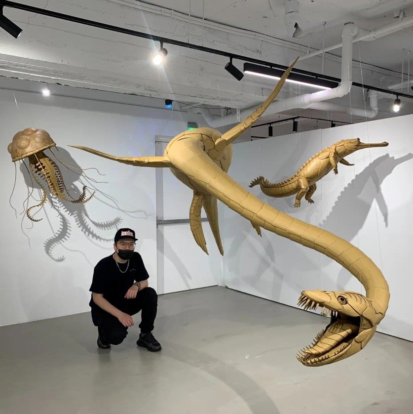 鍾凱翔畢業於東海大學美術系,擅長以隨手可得的瓦楞紙為素材,製作出精細的動物雕塑,小如甲蟲、竹節蟲,大至臺灣雲豹、海豚、以及電影角色如「鋼鐵人」。