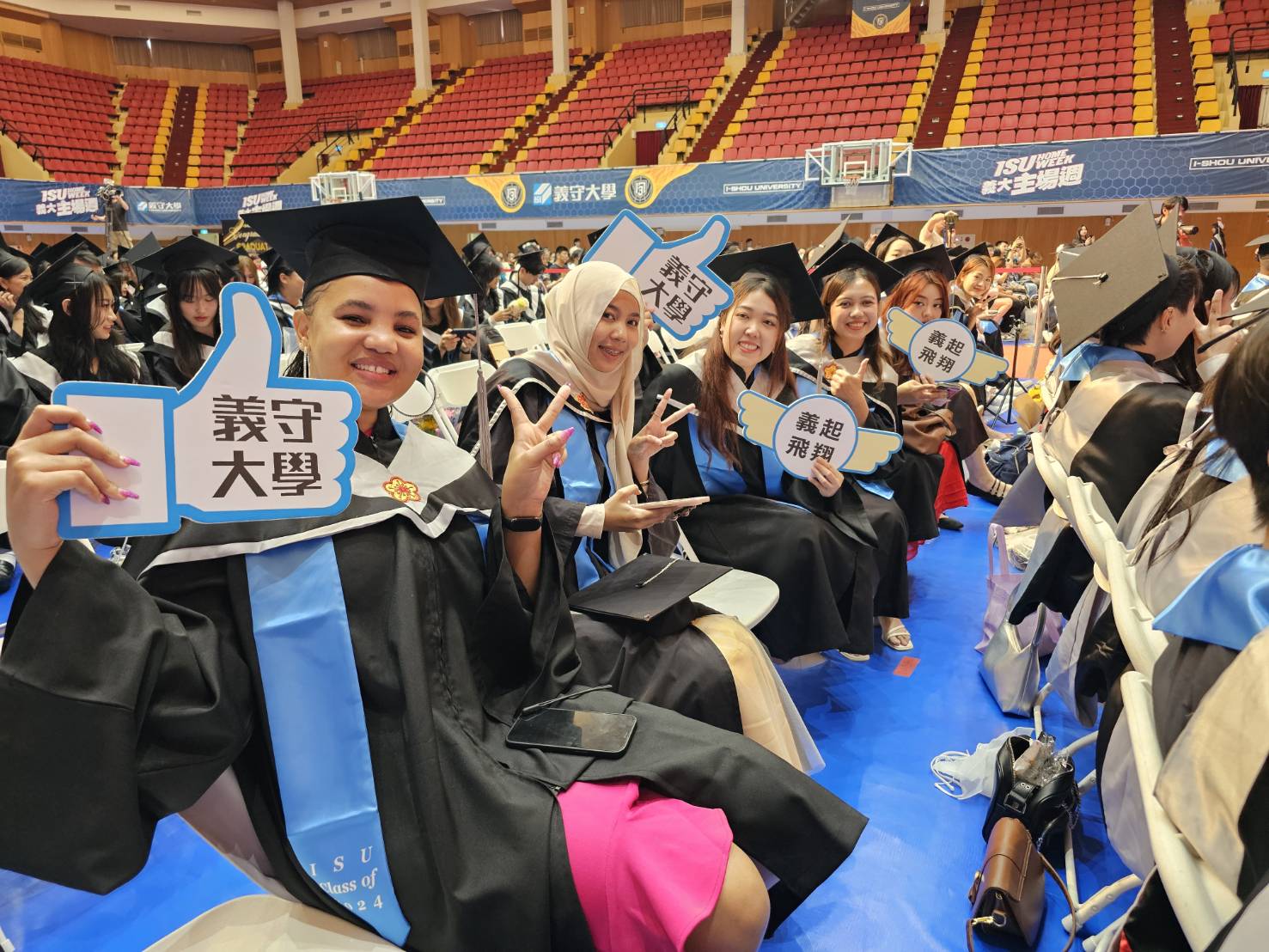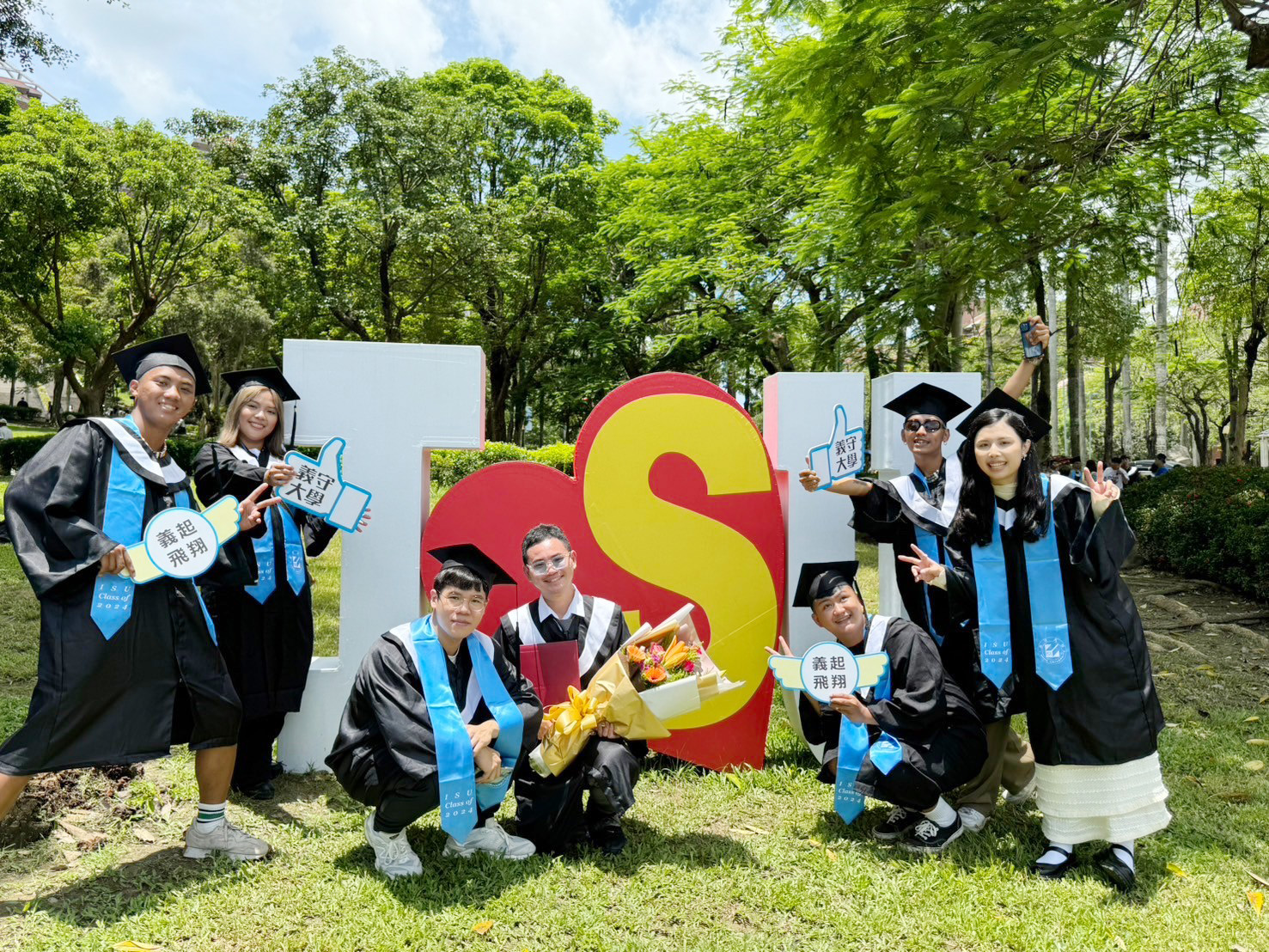 時值畢業季,義守大學畢業典禮於15日盛大登場,畢業生與親友團一同出席,場面壯觀且熱鬧,許多境外生的家長遠道而來,以行動祝福學子完成學業,氣氛溫馨又感人;在貴賓雲集的畢業典禮中,還有來自加勒比海的友邦國家聖文森大使柏安卓H.E. Ambassador Andrea Bowman也出席這場畢業盛典。另外,義守大學也在典禮會場外設置多個具有校園意象的大型看板打卡區,吸引畢業生爭相拍照留念;學校也出動空拍機記錄畢業生道別校園走向未來新里程的重要一刻。
