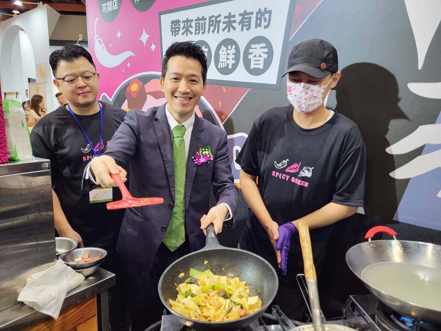 總統府副秘書長何志偉出席開幕式並致詞表示,台灣連鎖加盟促進協會成功爭取到2026世界連鎖年會在台舉辦,這是台灣服務業軟硬實力走出國際的絕佳機會,未來帶領一千個台灣品牌輸出海外值得期待,台灣服務業佔GDP六成,中小企業是台灣的根本,期待台灣連鎖加盟促進協會持續帶領產業前進。何志偉參觀展覽時,也品嚐許多台灣道地美食與手搖飲品,大讚台灣品牌旺盛的創造力