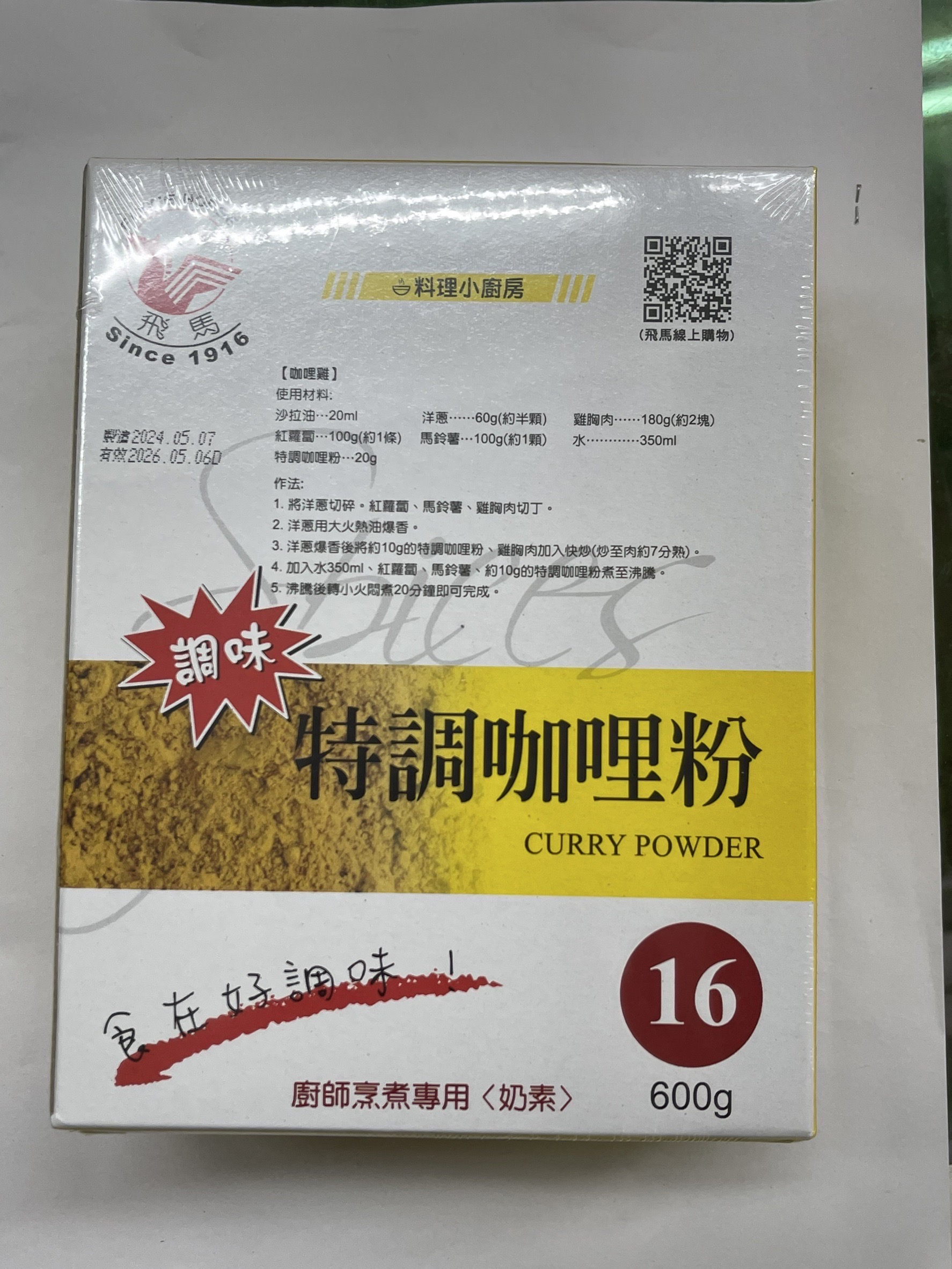提醒消費者倘購買該產品「製造日期:2024.05.07;有效日期:2026.05.06D」之「特調咖哩粉-600g/包」,請持發票或產品向原購買商提出退換貨。
