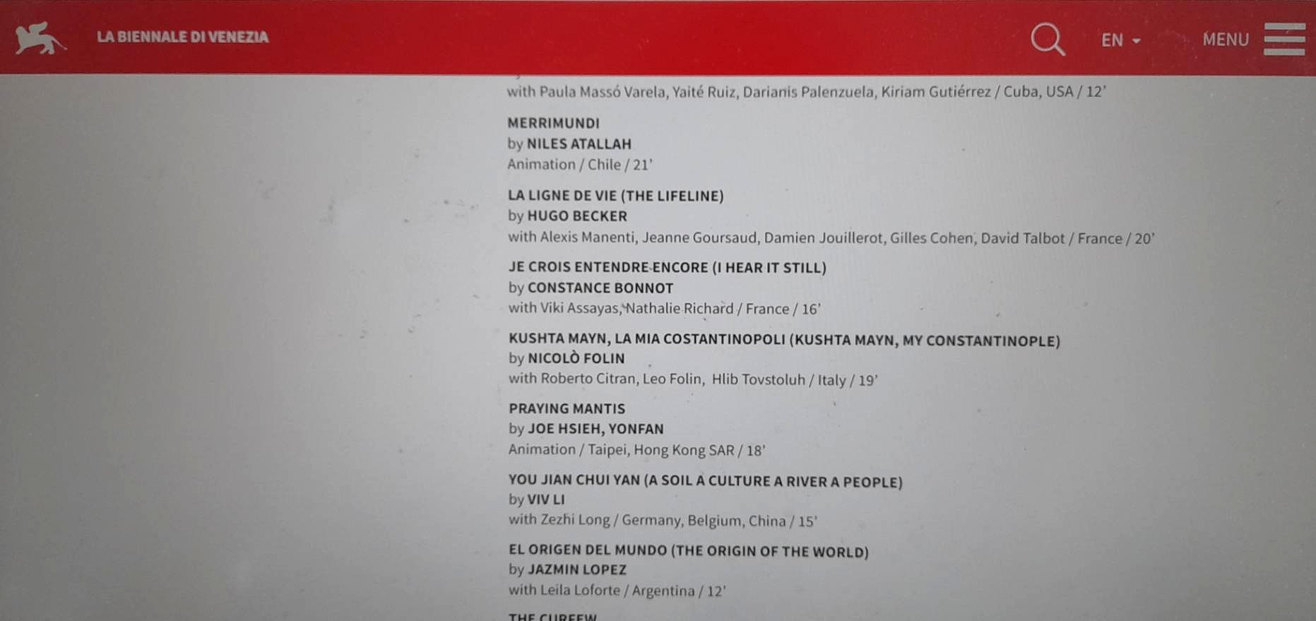 點入威尼斯影展官網,入圍第八十二屆影展競賽的台灣作品有的跟外國合資,有的資金全來自台灣,但影展官網上並看不到Taiwan,只看到Taipei字眼。即便陳芯宜導演2022年獲得Venice Immersive競賽首獎作品「無法離開的人」(The Man who couldn’t leave),影展官網上也同樣標示影片出品國為Taipei。