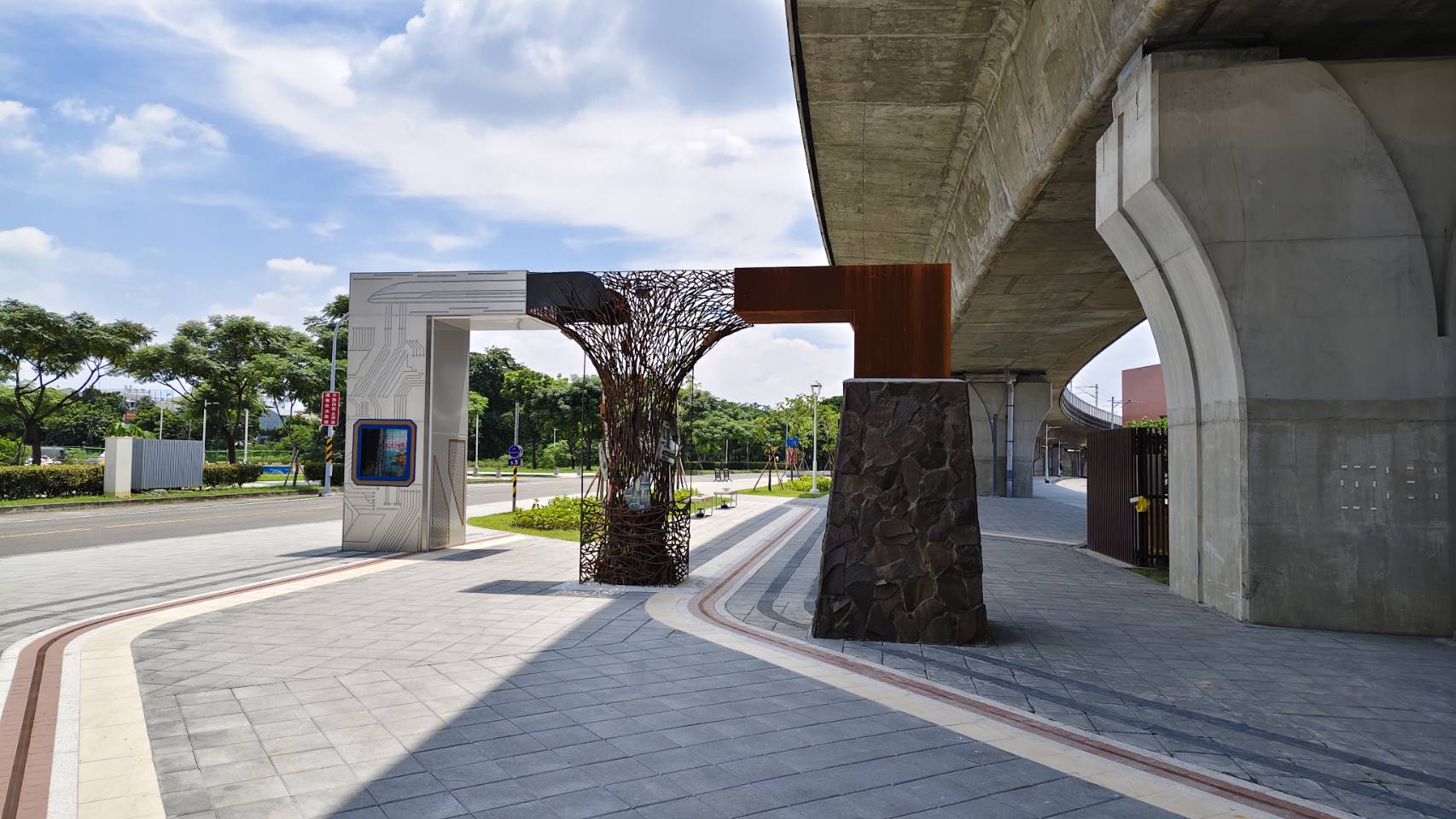 隨著高鐵南延屏東的政策定調,屏東的軌道交通建設邁入新紀元,為記錄這段發展過程,在本次工程中建置裝置藝術-洞見光影,採3座墩柱視覺錯位設計,將「貓洞」造型重現,其中各墩柱賦予分飾著發展過程中過去、蛻變、未來的語彙。