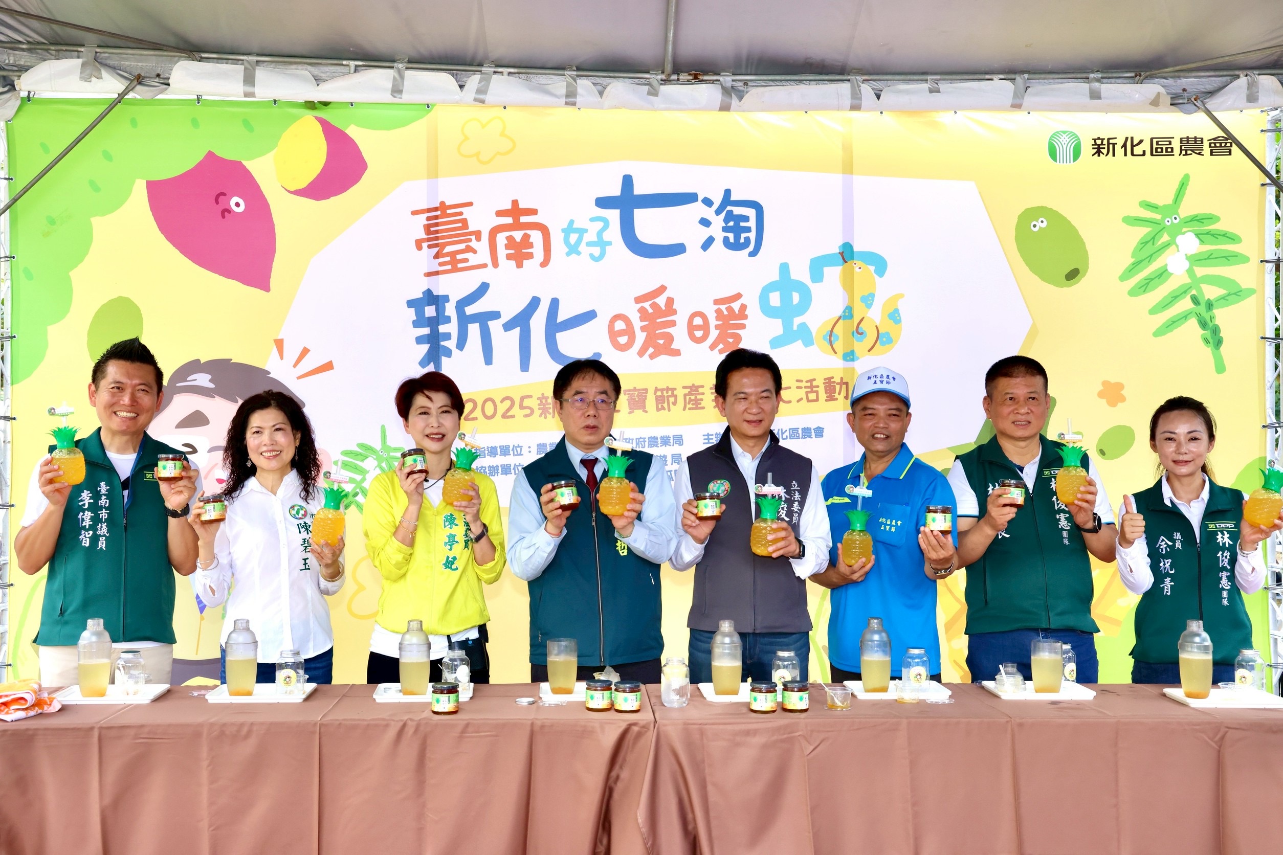 2025年新化五寶節今(17)日在風景秀麗的虎頭埤風景區熱鬧登場,由新化區農會主辦,結合健走活動、青農市集與食農教育,吸引上千位民眾熱情參與,一同在初夏中健行吸芬多精、品嚐五寶美食,深度感受新化在地農業與文化魅力。