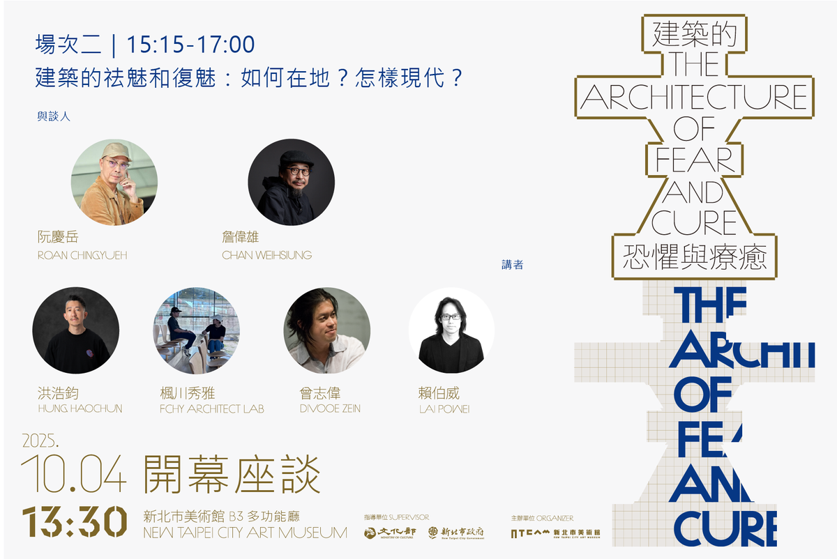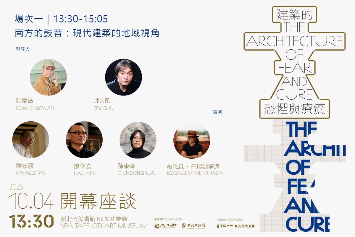一場具有深度的展覽不僅止於物件展示,必須要有面對社群的動能,《建築的恐懼與療癒》為此安排各種公眾活動,包含座談、導覽、講座,要讓理論與經驗交錯,使得觀眾從「旁觀者」轉為「共鳴者」以4日座談為例「南方的鼓音:現代建築的地域視角」與「建築的祛魅與復魅」兩場主題,討論熱帶氣候脈絡、在地語彙與現代表達的張力,邀請建築師與學人對話。