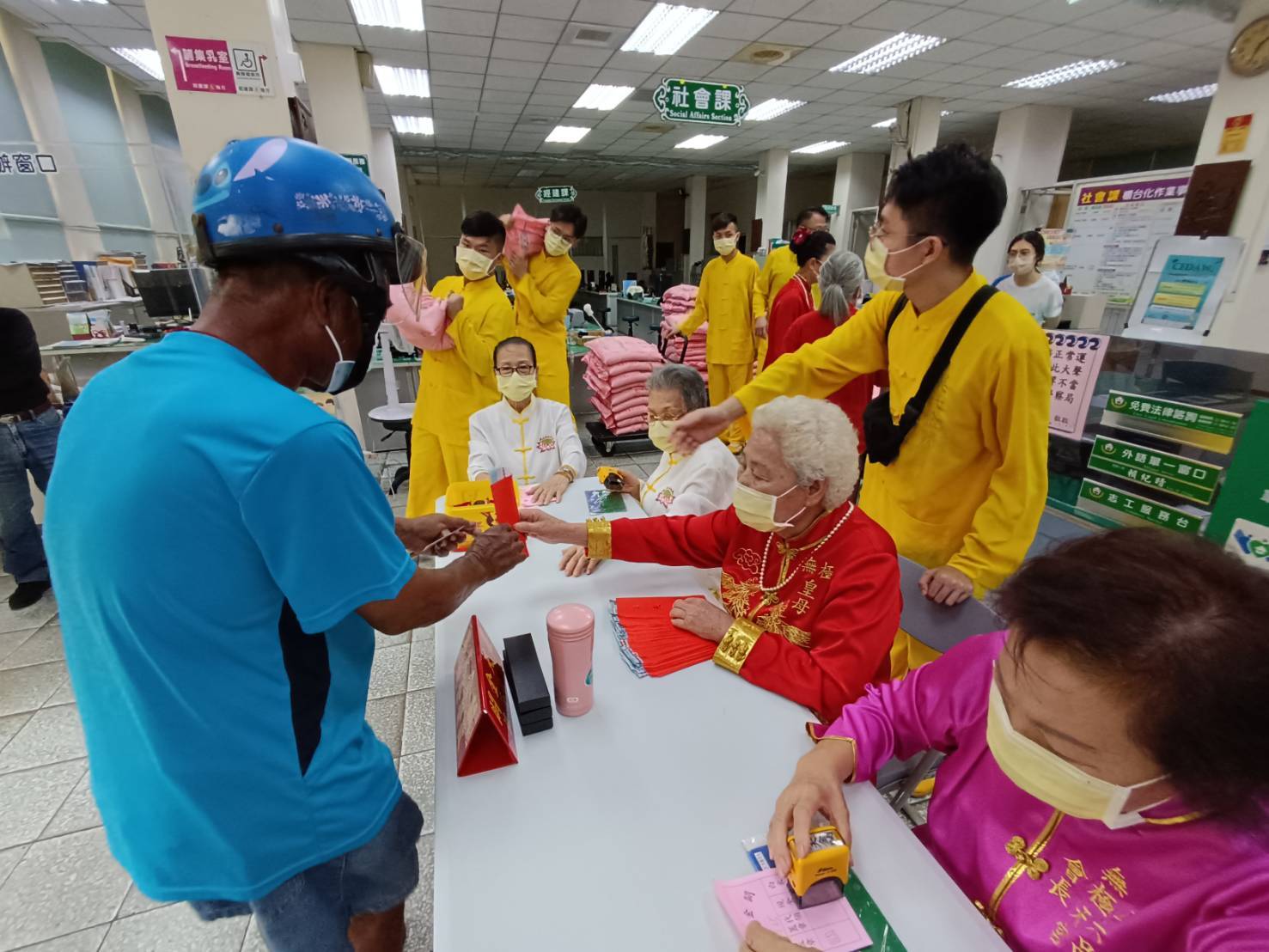 昊天金闕今(7)日到台南市鹽水、白河、新營等三地區辦理聞聲救苦活動。台南市新營區正好是「昊天金闕」聞聲救苦活動全國進行到第150個鄉鎮市區,今天下午在新營區公所發放新營區鄉親(低收入戶)二百多戶,昊天金闕師兄姐及新營區區長翁振祥地方仕紳均在場協助,見證並分享這一溫暖時刻。