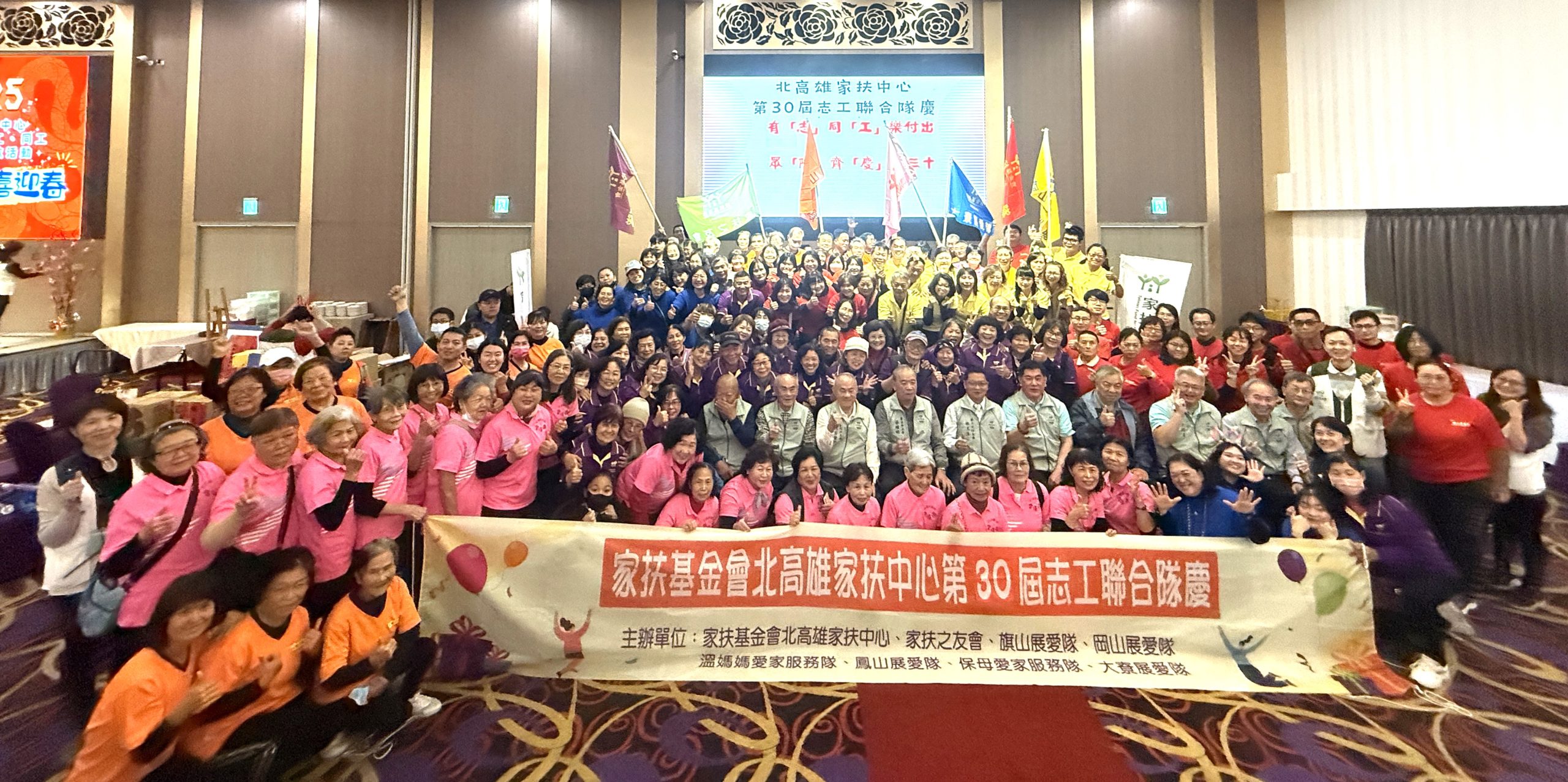 北高雄家扶中心有一群默默付出,協助推動扶幼工作的七支志工隊,有超過二百位志工夥伴,陣容龐大,不但是中心強而有力的後援,也持續為社會傳遞正向力量。今(18日)舉辦「第30屆志工聯合隊慶暨表揚活動」,肯定各項扶幼工作的志工夥伴們的無私奉獻。