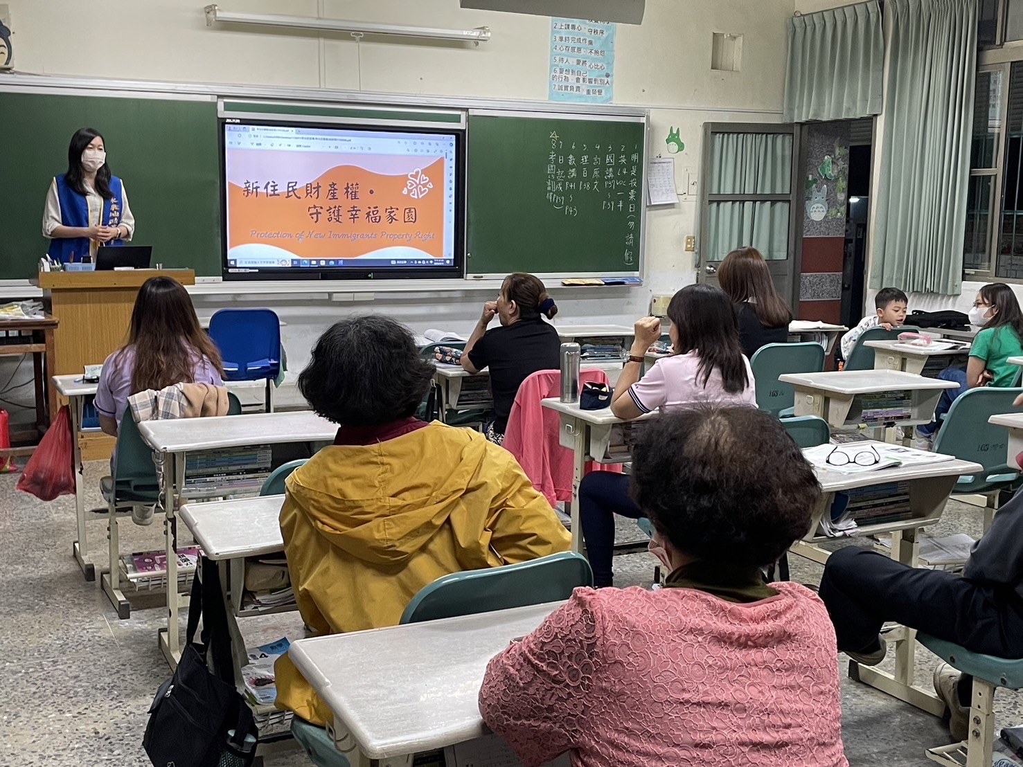 關懷新住民權益,永康地政事務所於4月11日前往臺南市立大灣高中附設國民中學補習學校宣導新住民不動產財產權相關權益,受到學員熱烈反響。這次活動幫助新住民瞭解外國人與大陸人士在買賣取得不動產與繼承登記程序上的差異,並說明地籍謄本各部別內容及介紹權狀樣式與謄本差異,以及「住址隱匿」、「地籍異動即時通」及「合法不動產業者標章」等地政交易安全與簡政便民措施宣導。