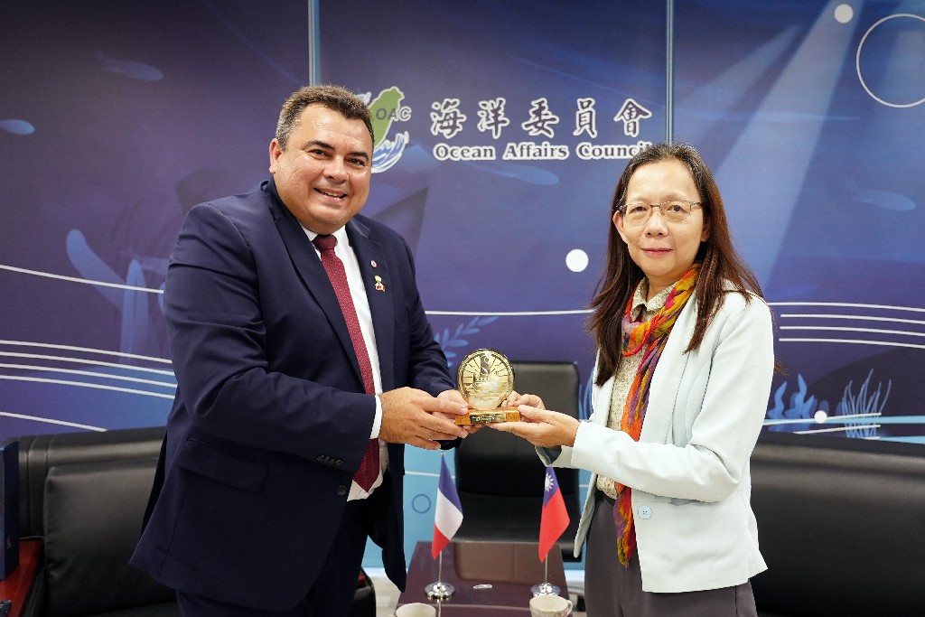 法玻特別提到觀光產業為其重要經濟來源,一百多個島嶼的海洋環境是重要資產,其海洋教育從小紮根,在各級教學中融入海洋理念,包括數學算術會讓學生算有幾條魚等,以全面提升學生的海洋保育知識與意識。黃副主委分享海委會大力推動海洋素養教育,包括今年與法國合作鼓勵宜蘭縣立岳明國民中小學攜手舉辦帆船航海環島交流活動,各項行動就是希望提升全民海洋素養,雙方可藉網路等各種形式讓年輕學子交流,共同推動海洋永續發展。