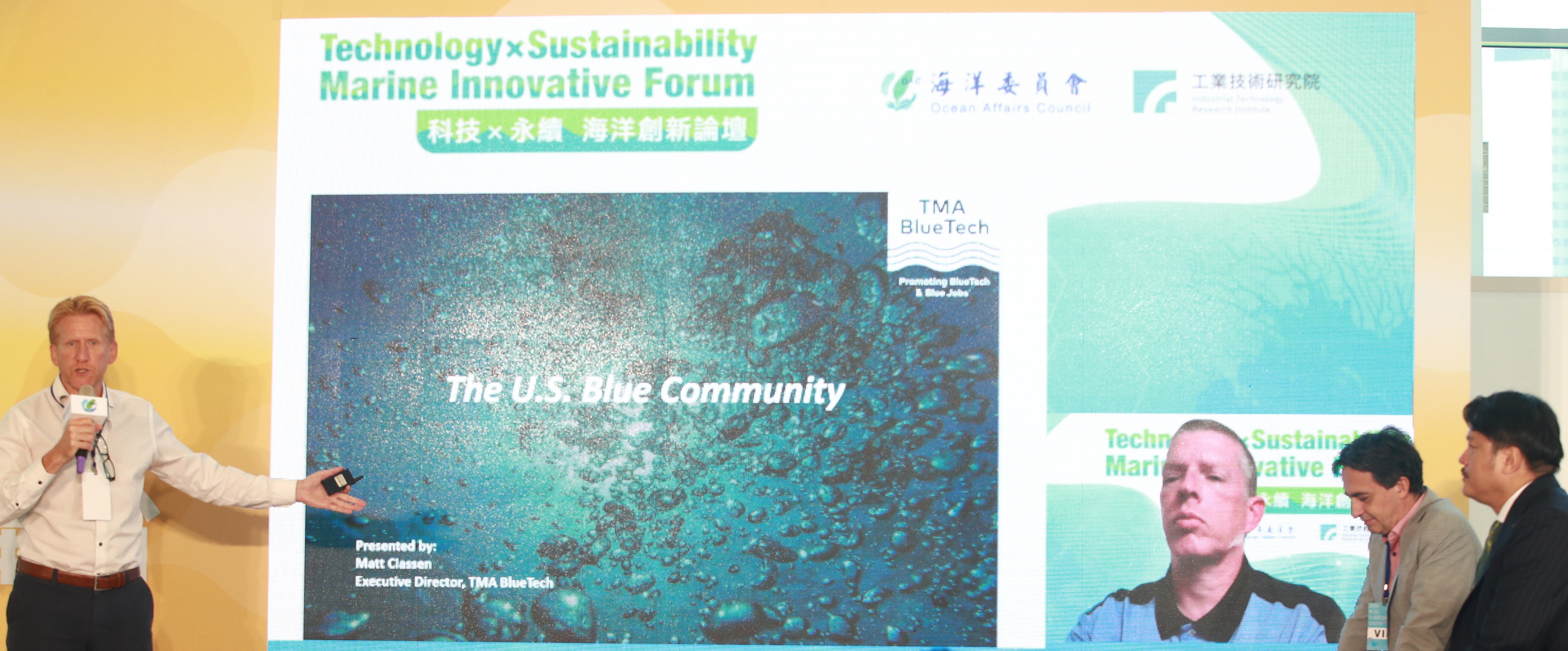 此次論壇促進臺美產官學研能量互動,並貼近產業應用現況,特別邀請多位重量級專家,針對海洋科技與永續發展發表精采演說。美國國家海洋暨大氣總署(NOAA) 科技合作辦公室(Technology Partnerships Office, TPO)代理主任Michael Kruk深入介紹NOAA的「研發成果成功技轉至業界」,推動海洋產業創新成果;臺灣大哥大永續品牌公關副總經理劉麗惠分享了協助社會創新團隊放大ESG影響力,利用AI和雲端技術,建立「AI Ocean數據海洋」的經驗,並展示科技在保護海洋生物多樣性的創新應用;美國海洋聯盟(TMA BlueTech)執行董事Matt Classen介紹了如何成功建立海洋網絡社群,發展藍色關鍵技術創新; 玉山國際加速器(Mosaic Venture Lab)創辦人暨總經理海仁福(Volker Heistermann)從國際創投的視角,分享了「面對世界永續海洋經濟投資」的見解,並進一步剖析臺灣海洋科技產業對全球投資的吸引力;陽明交通大學電機工程學系副教授王學誠也以海洋委員會海洋科技專案角度,分享「運用人工智慧提升海事安全」的研究成果,臺灣與國際夥伴在開發海洋永續AI解決方案方面的優先合作研究領域,同時分析海事監測技術研究,如何直接影響臺灣海洋的永續發展。