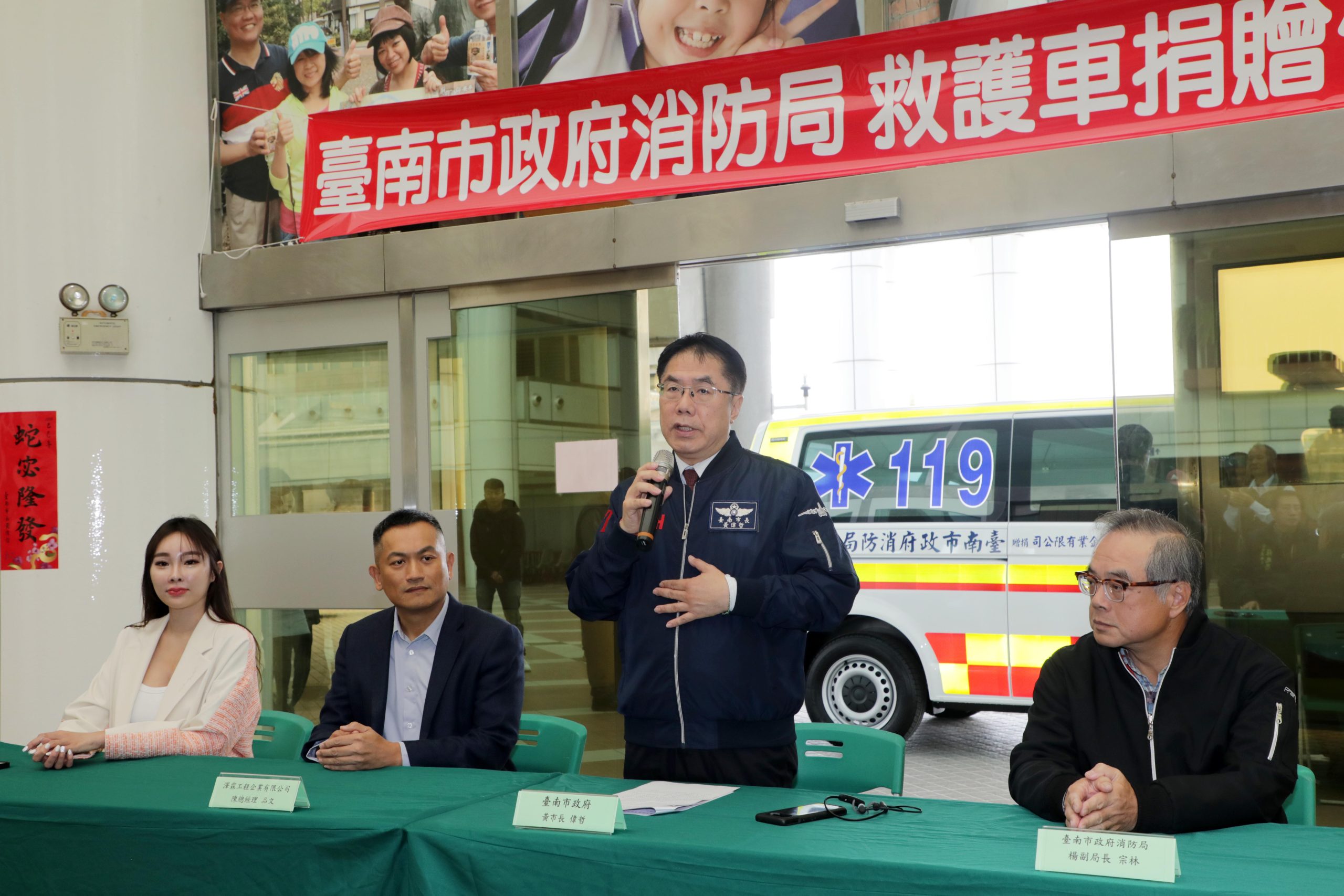 響應黃偉哲市長溫暖大臺南之施政理念,及落實社會企業責任,澤霖工程企業有限公司捐贈臺南市政府救護車1輛,今(10)日於永華市政中心舉行捐贈典禮,市長黃偉哲致贈感謝狀予澤霖工程總經理陳品文伉儷,肯定企業善舉為城市注入溫暖與力量,盼望未來能有更多社會人士加入行善行列,讓善的力量永續發展。