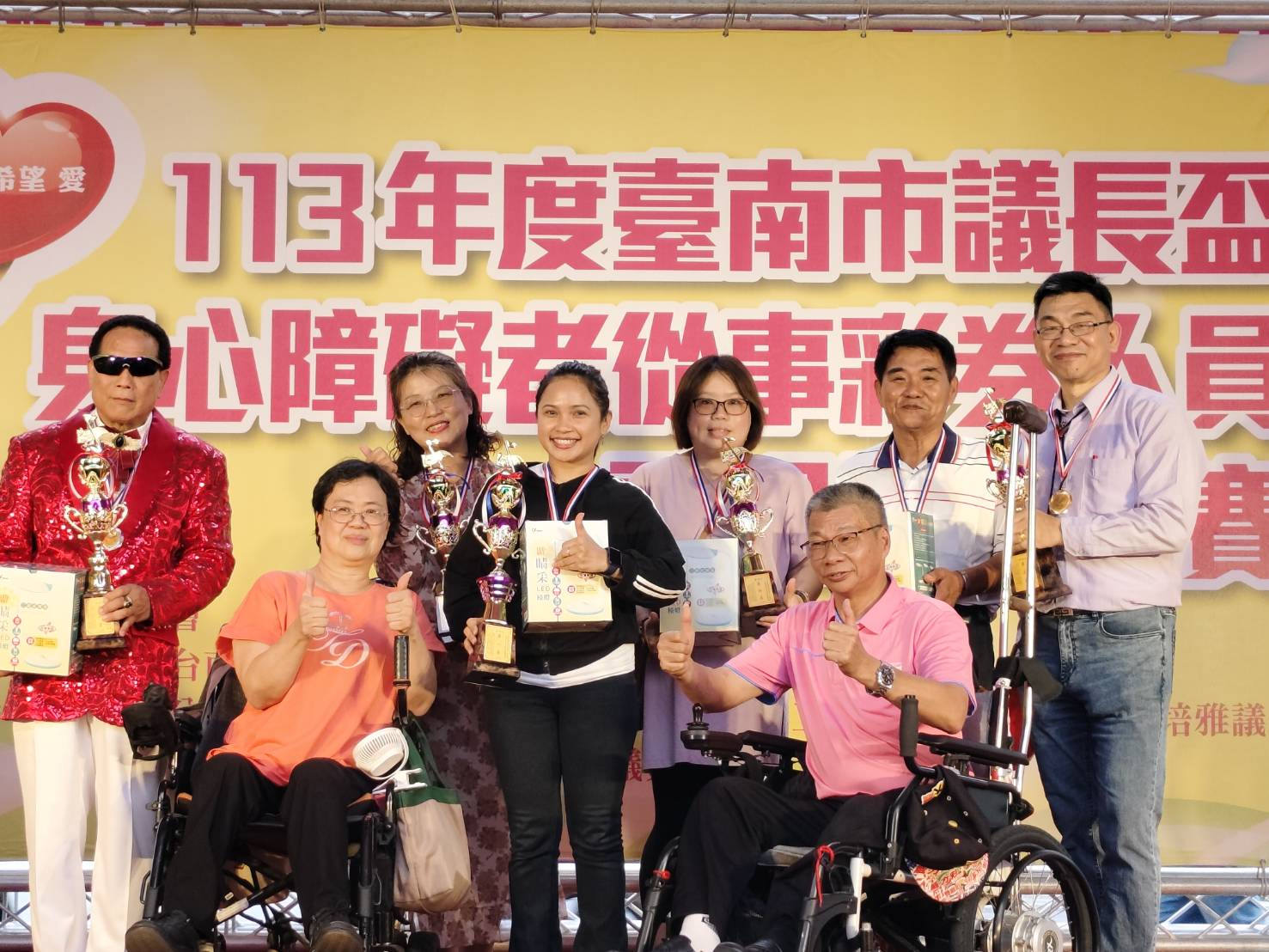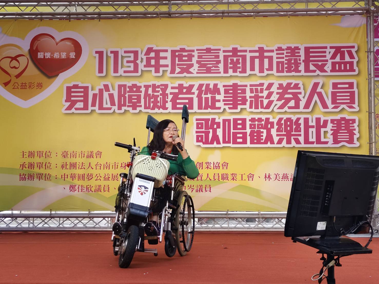 一首激動人心的歌聲,「心碎」由身心障礙朋友深情唱出,獲得評審一致好評!也ㄧ圓他人生的一個美麗夢想!今(28)日,正值全國彩券公會年度盛會,辦理地點選定臺南市南都里活動中心,場面盛大,議員、市政府局長與臺灣彩券公司總經理也都親自出席本盛會!也於此盛會辦理歌唱大賽,唱出身心障礙者的情感!