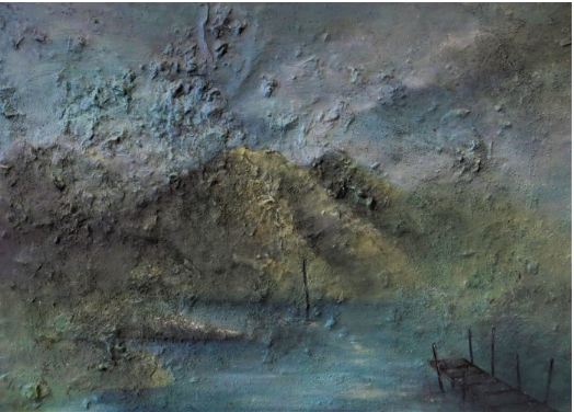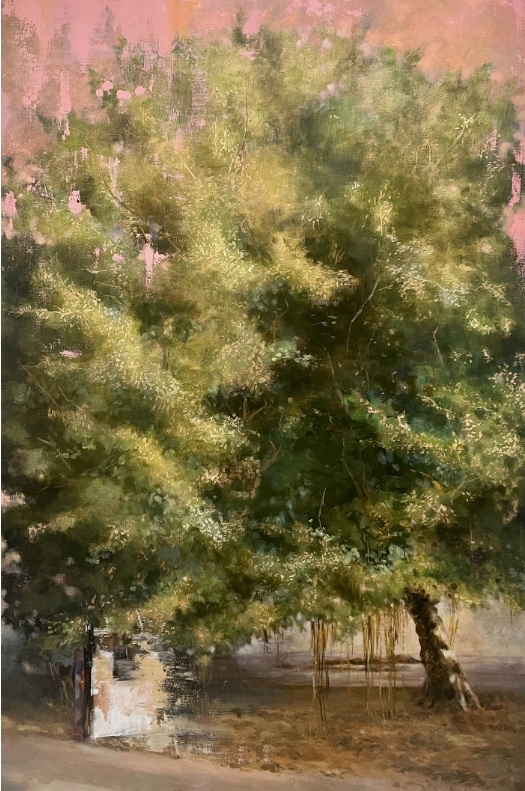 她將這段旅程中的體驗融入作品,透過繪畫中若有似無的意象,表達了時間的流轉和心靈的觸動。