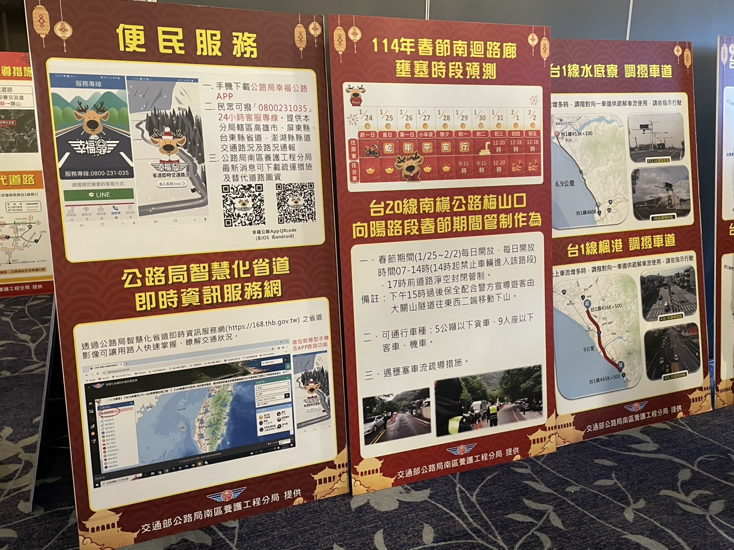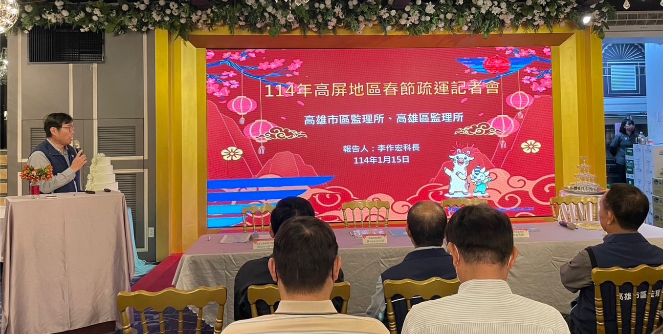 9天農曆春節即將來臨,高雄區監理所、高雄市區監理所、南區養護工程分局與南區公路新建工程分局等機關15日聯合舉辦「114年度高屏地區春節疏運記者會」,分別說明高雄及屏東地區公共運輸疏運量能籌措及優惠措施,道路交通疏導及管制措施,提供用路人事先規劃春節返鄉、出遊行程及配套方案,以提升公共運輸使用量並確保高屏地區整體交通暢通。