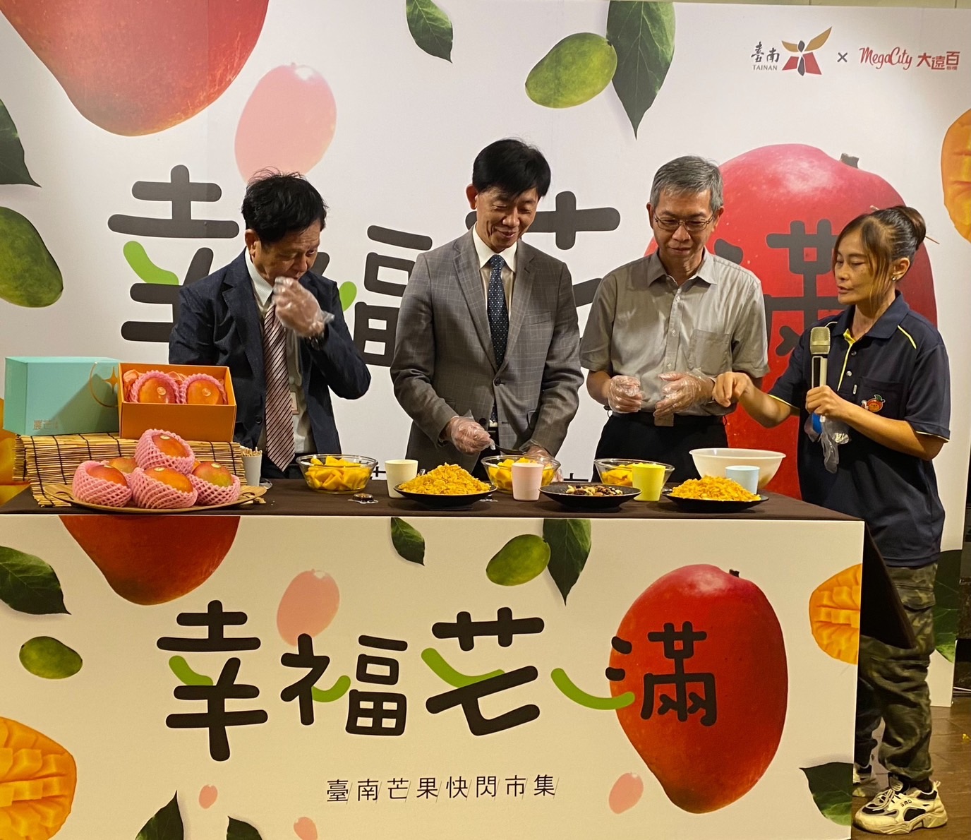 臺南是全臺芒果種植面積最多的地方,一年一度的臺南國際芒果節即將於6月22日假走馬瀨農場盛大展開,在芒果節開幕前,臺南市長黃偉哲也不忘北部的朋友,提供一批新鮮臺南芒果讓大家先嚐為快,於6月16日下午在板橋大遠百B1綠洲區舉行臺南芒果一日快閃市集,現場提供消費滿額抽獎、芒果試吃,除了南化、官田、左鎮、玉井、楠西各區帶來新鮮芒果,還有油蔥酥、肉燥貢丸、糙米茶、桂花酸梅湯、紅棗銀耳湯等臺南農特產品。由芒果達人帶領葉澤山副市長及貴賓製作芒果優格,吸引大小朋友的目光,在炎炎夏日中感受甜蜜、既消暑又暢快。
