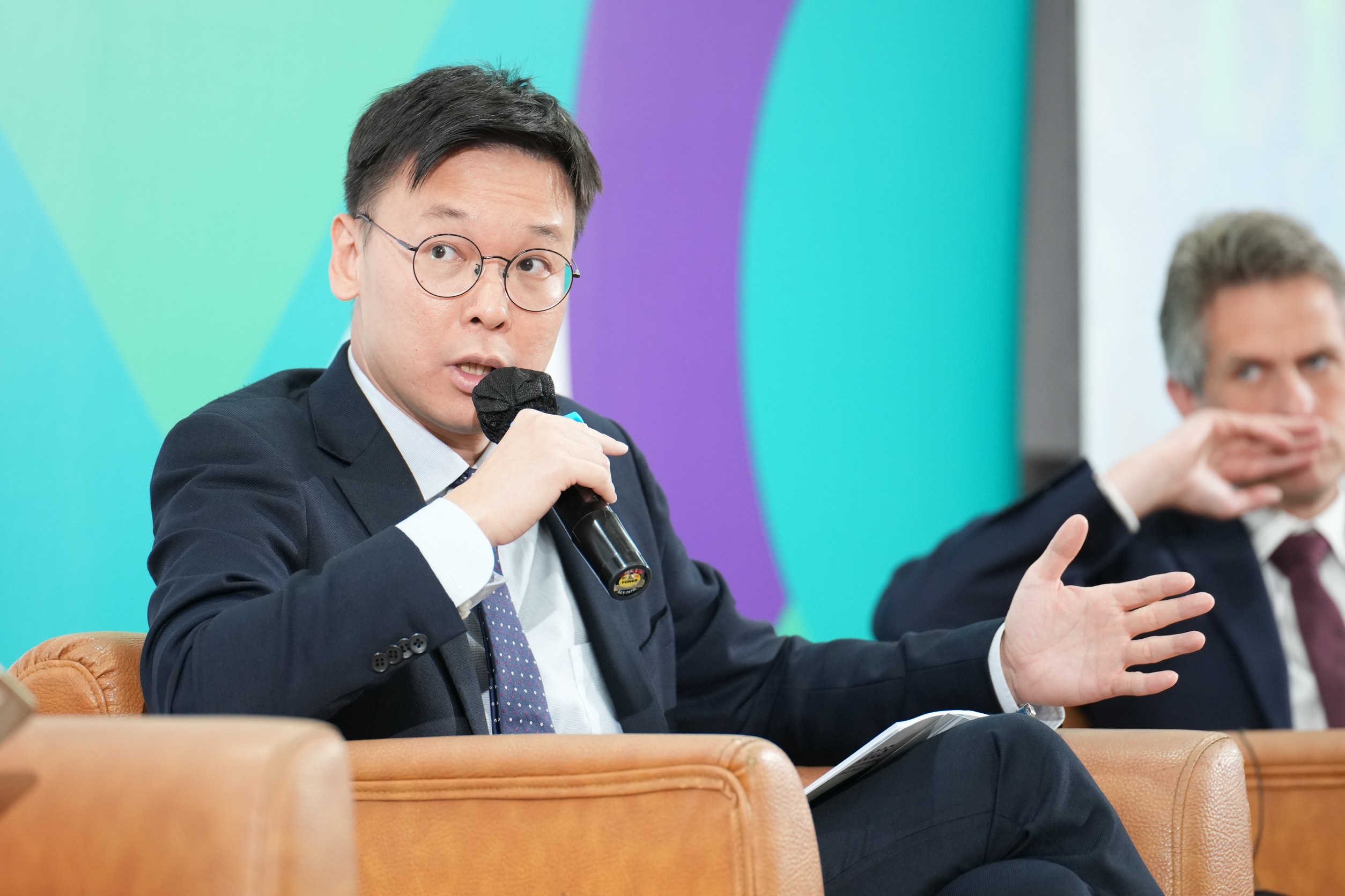 在對話尾聲氣氛輕鬆時,主持人 Thomas P. McDevitt 幽默提問:「如果今天可以直接和川普總統通話,您會想說些什麼?」管主委妙答:「過去二十多年來,台灣成功加入了奧委會、APEC、亞洲開發銀行與WTO等四個國際組織,但第五個遲遲未能實現。我們有意願、也有能力,懇請川普總統這位談判高手幫幫忙。」現場笑聲與掌聲交織,展現臺灣官員在外交場域的親和力與訴求正當性。