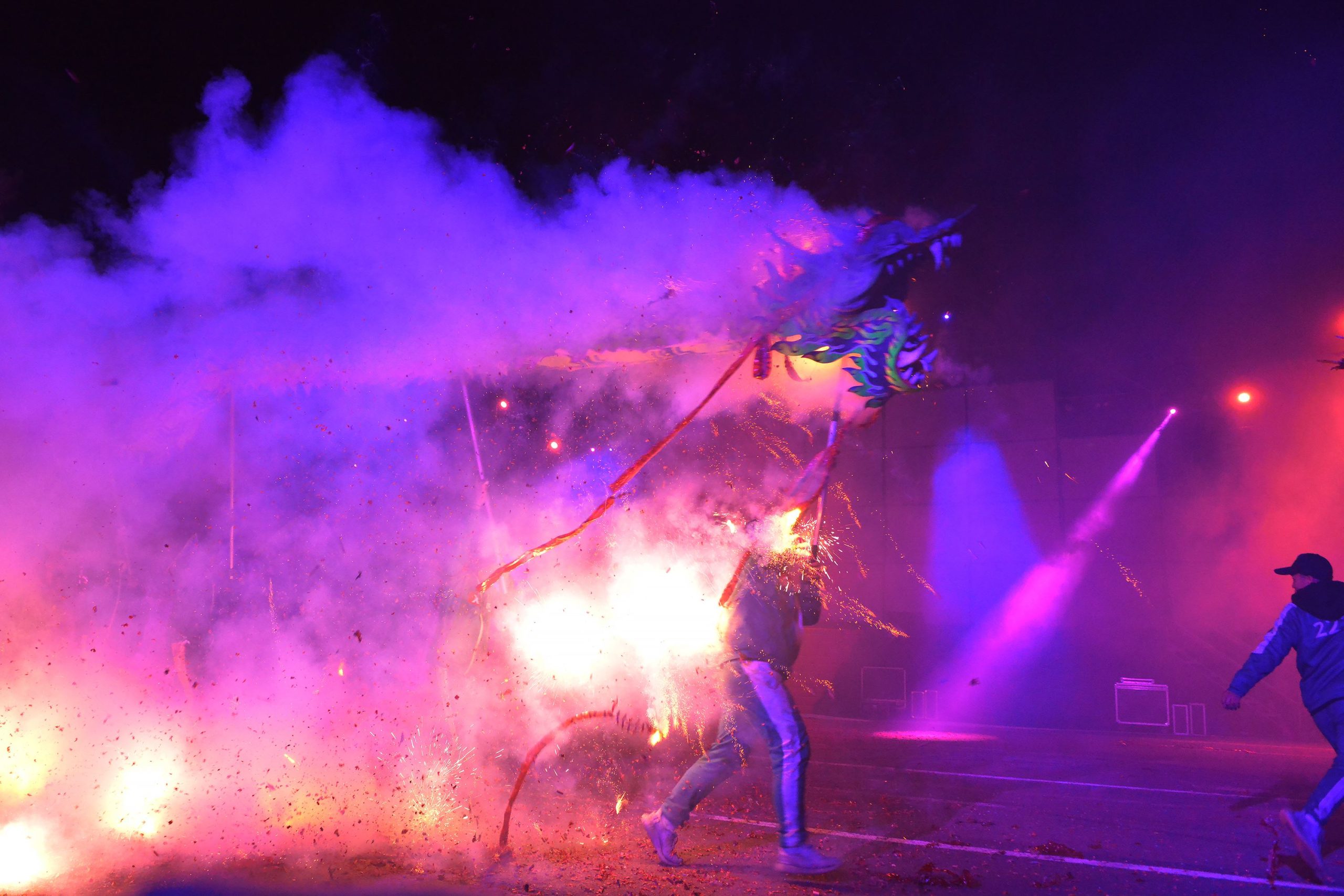 由苗栗市公所主辦的「2025苗栗火旁龍—強火旁出吉」系列活動,自2月6日至14日熱鬧舉辦,重頭戲「火旁龍之夜」9日下午5點起在河濱公園舉行,結合聲光特效、舞蹈及音樂等元素的各項表演輪番上場,壓軸由國立體育大學舞龍隊與馬來西的耶耶亞哇洪仙大帝廟舞龍隊雙龍隊攜手演出,以訓練有素、默契十足的競技龍套路,結合燈光與特效,為全國遊客獻上融合傳統與創新的多元視覺盛宴。