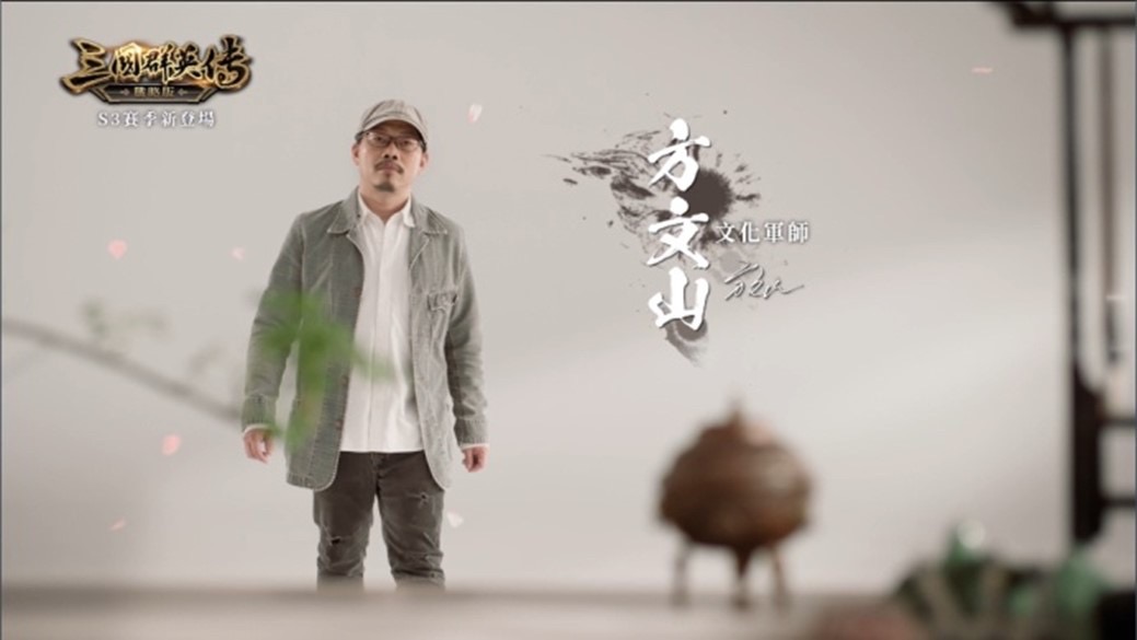 華語流行文化巨擘,有「詞中臥龍」稱號的樂詞泰斗方文山,深度參與遊戲《三國群英傳 – 戰略版》化身文化軍師拍攝宣傳廣告。方文山近年致力漢服文化與多項古典美學與現代藝術發展,本次的主題曲MV中,隨著紅衣舞姬翩翩起舞,方文山從時裝到穿著正統文士漢服,化身三國亂世中的諸葛臥龍,隨著旋律展開穿越古今的故事情節。一身古時軍師扮相,揮舞著手中的白羽扇,便可計上心來。一會又端坐案前,提筆蘸墨,一筆一畫橫豎撇捺之間,將歷史文化底蘊躍入策略遊戲世界,親手寫下《三國群英傳 – 戰略版》書法墨寶,為遊戲加持題字。