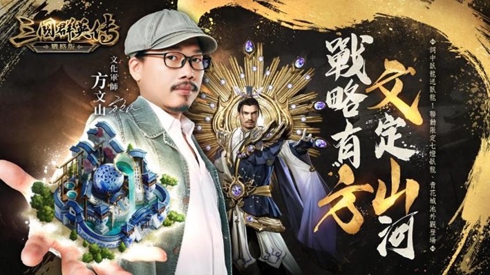 華語流行文化巨擘「詞中臥龍」方文山,首次深度參與遊戲《三國群英傳 – 戰略版》化身文化軍師。全新S3賽季打造主題歌曲《群英之戰》:創作過程,方文山直呼,很過癮!歡慶合作,遊戲公司推出呼應「詞中臥龍」的限時活動「臥龍慶典」,限定角色「七燈臥龍」、形象城池「青花山河」,與五大賽季重點,恭迎各路主公重返戰場。