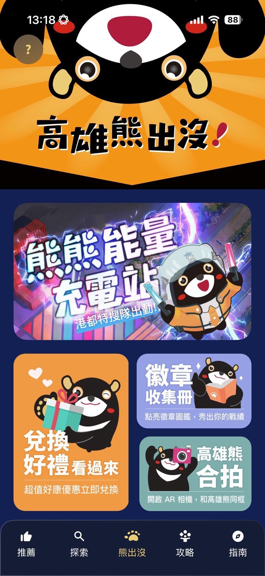 觀光局表示,《高雄GO!》APP結合高雄熊AR互動及AI智慧客服功能,各條任務路線更搭配不同造型的俏皮高雄熊,提供豐富拍照與互動體驗,兼顧親子族群、年輕旅客與自由行玩家。操作介面直覺簡單,建議民眾可搭配「高雄好玩卡」一日券或三日券,利用捷運、輕軌及大眾運輸工具輕鬆暢遊城市。遊客只要在「2026高雄冬日遊樂園」(02/07~03/01)活動期間,至高雄港旅運中心、愛河、壽山動物園等39處指定地點,掃描Q版超人力霸王FRP模型即可完成數位集章,更可參加抽獎活動,有機會獲得iPhone 17 Pro、台灣虎航高雄出發不限航點機票、沐艇海上超跑體驗券、聯合航空飛機模型、LINE Points,以及冬日遊樂園限定商品等多項好禮。