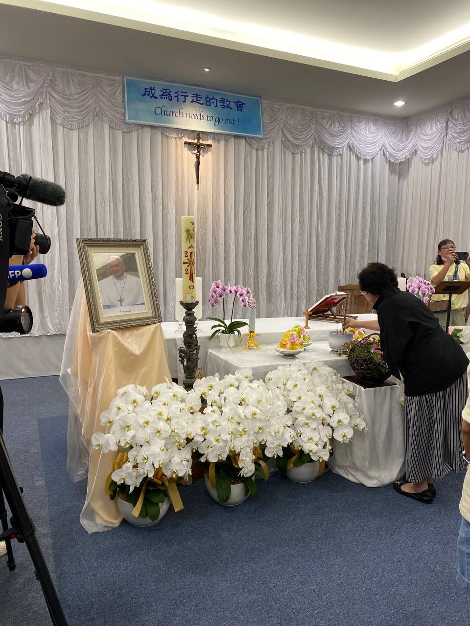 天主教台北總教區公署表示,已於22日下午,設置靈堂,並於今日起至教宗殯葬彌撒前一日,平日上午10:00至下午4:00開放供信友追思。