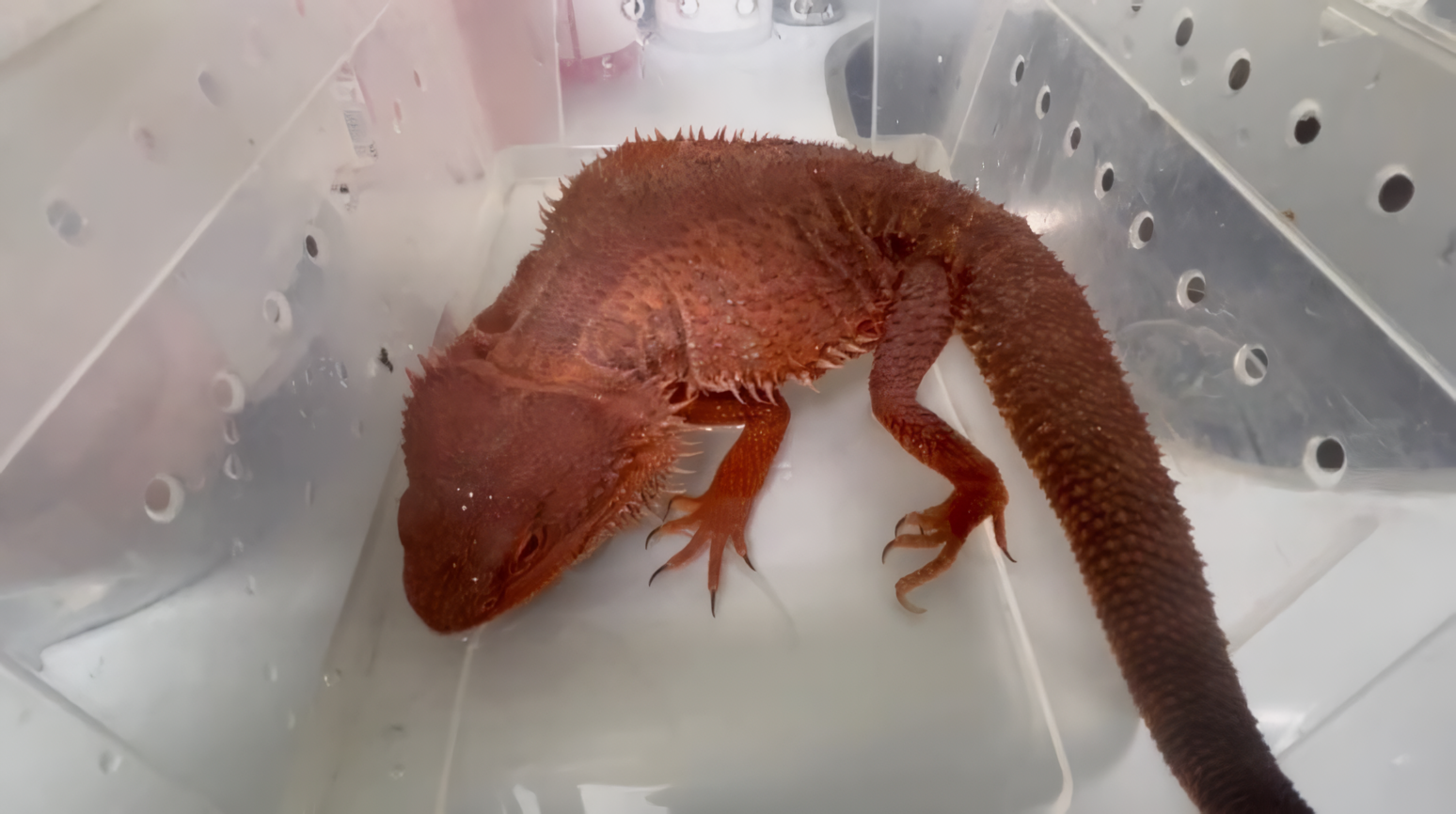 動保處表示,日前接獲民眾通報,指某超商內出現蜥蜴,原先研判可能為常見的攀木蜥蜴或綠鬣蜥,不料現場查驗後,竟在包裹堆中發現一隻體色鮮紅、外觀特殊的蜥蜴。經專業辨識,確認為雄性「紅魔血系鬆獅蜥」,且來自中國廣州。進一步開箱檢查後,又發現另一隻雌性鬆獅蜥。經動保處約談相關人員到案說明,確定違法事實,已依法裁處1萬元並沒入蜥蜴。
