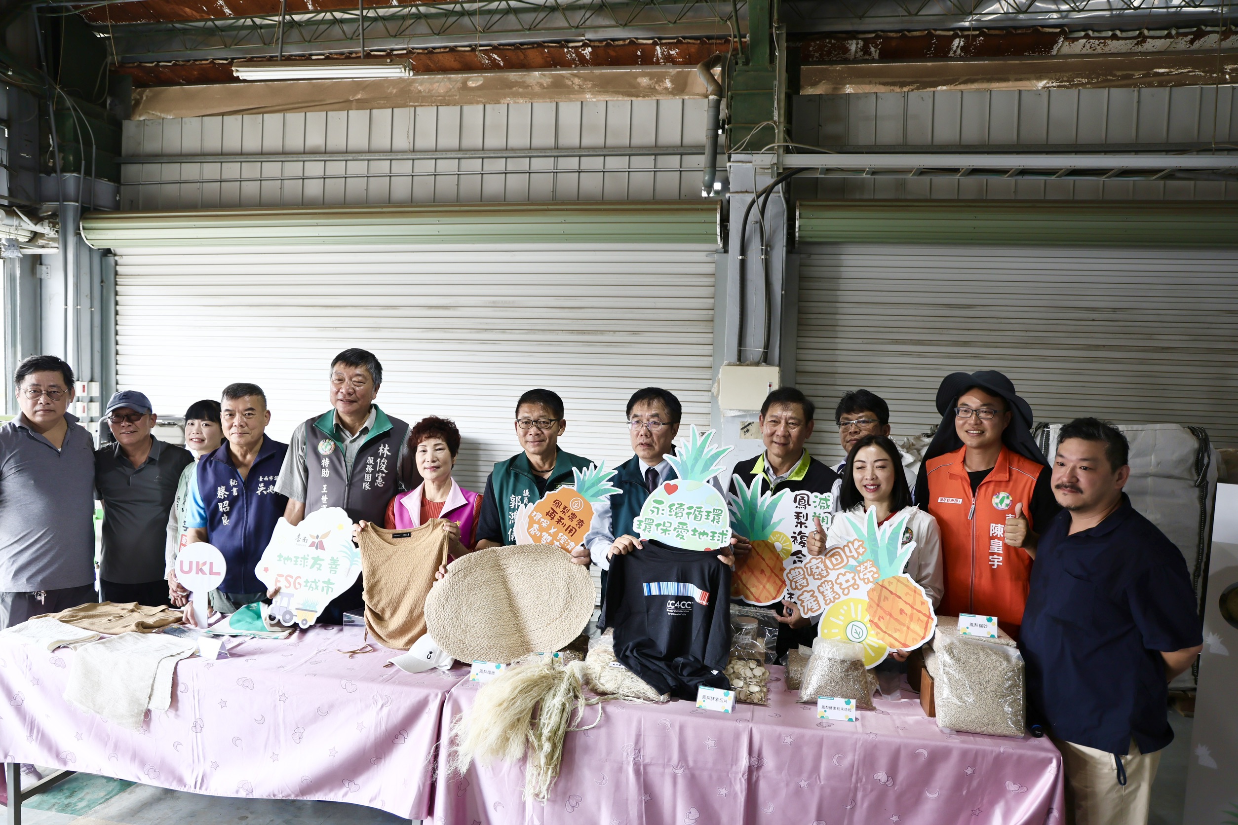 在農業資源再利用方面,「鳳梨葉」經加工可提煉「鳳梨纖維」,用作低碳排放、堅韌耐用的天然紡織原料,符合國際永續標準,並可提供產地證明,打入全球市場;「鳳梨莖」富含天然「鳳梨酵素」,可製成高效能飼料添加劑,有助消化、促進健康,達成無毒、環保之目標。