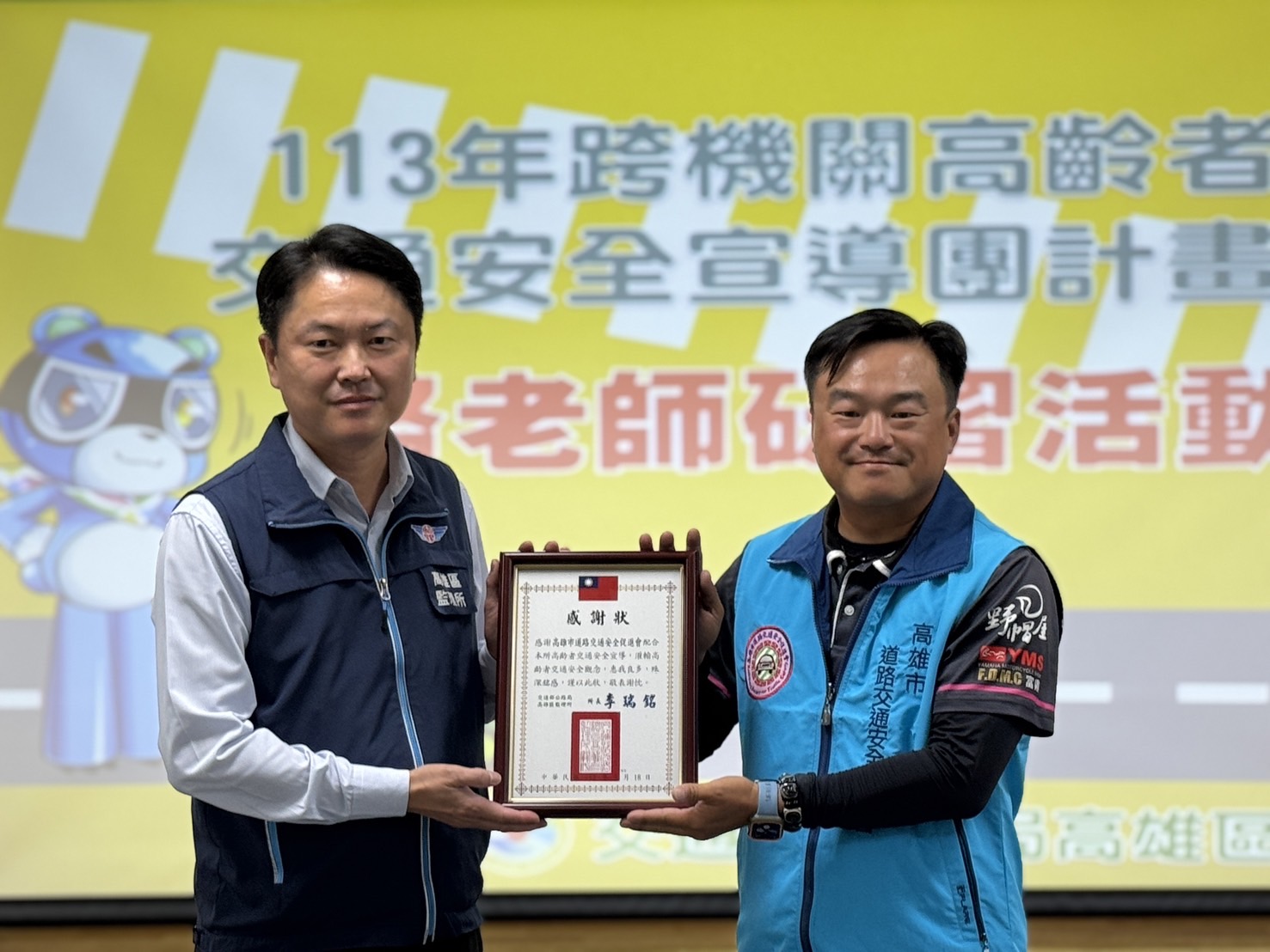 高雄區監理所所長李瑞銘表示,非常感謝路老師對交通安全的付出與貢獻,長期熱心辦理宣導活動,十分讓人敬佩,監理所特別製作感謝狀,並由所長親自頒發。