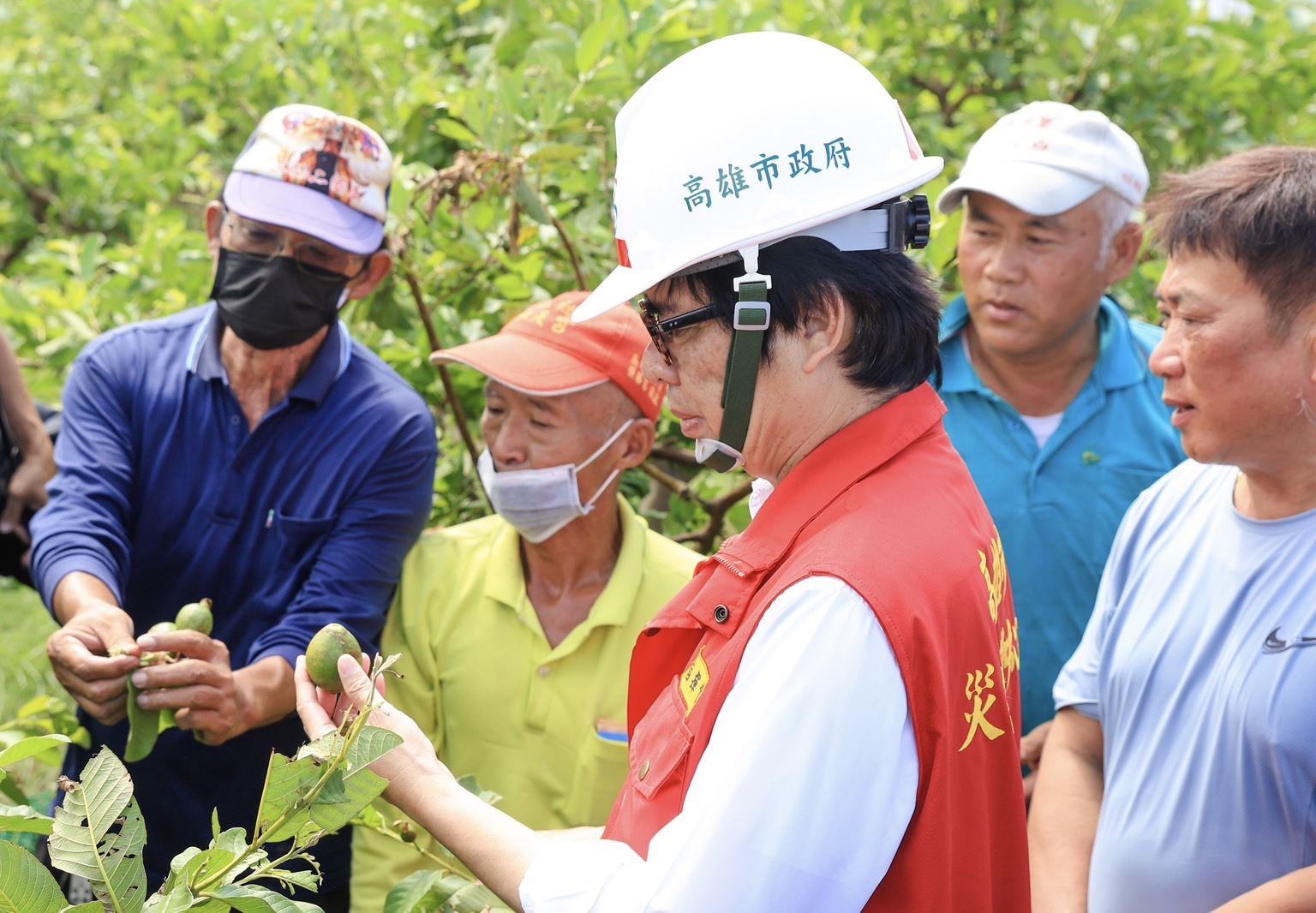 山陀兒颱風暴風圈壟罩高雄超過60小時,帶來強風豪雨,高雄港更測得破紀錄的17級強陣風,部分行政區的時雨量亦超過凱米颱風,高雄短時間內歷經兩個颱風重創,農作物損失預估破億,市長陳其邁心繫農損災情,今(7日)早趕赴大社、燕巢視察蜜棗及芭樂的損害情況,他承諾市府會從寬從優盡速進行災害的履勘,並向中央爭取以全品項現金救助的方式,協助農民共度難關。