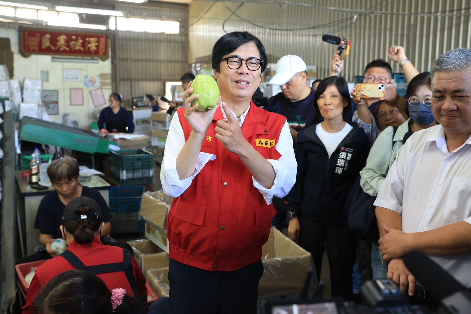 隨後,陳其邁至燕巢農會產銷班集貨中心,關心芭樂出貨情形及產銷班人員工作流程,感謝他們辛勤付出推廣優質農產品,更現場推薦高雄首選的燕巢芭樂香甜脆口。