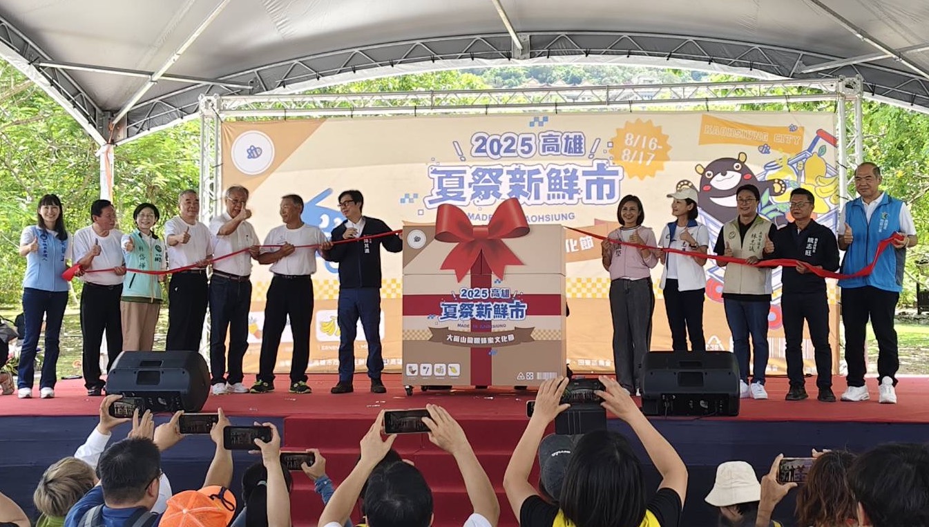 2025高雄夏祭新鮮市主打精選在地優質農特產,其中大崗山野生龍眼林蜂蜜質地純正、香味濃郁、口感滑潤,堪稱「蜜中極品」。市長陳其邁今(16)日出席第25屆「大崗山龍眼蜂蜜文化節」開幕,親自到場推薦,以行動表達支持。他致詞時談到養蜂的辛勞,強調「農會挺農民,市府挺農會」,並指出自己年年出席,從未間斷。今年龍眼蜂蜜迎來豐收,預計可達2,000噸,他也頒發有「蜂蜜界奧斯卡」之稱的國產龍眼蜂蜜評鑑特等及頭等獎,肯定農友辛勤成果。