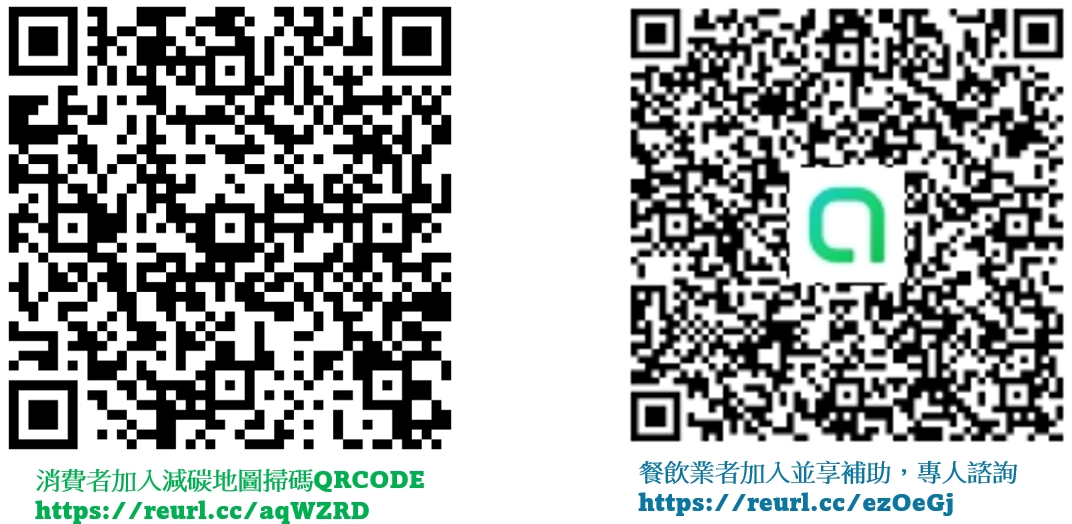 一般餐飲業者也可以透過掃描右上方QRCODE,一起加入減碳店家行列,不僅可提升店家正面形象、吸引更多使用者上門消費,而且在2024年11月底之前,還可根據減碳成效享有相關單位給予的高額補助:餐飲店家加入詢問點這邊 (https://reurl.cc/ezOeGj)