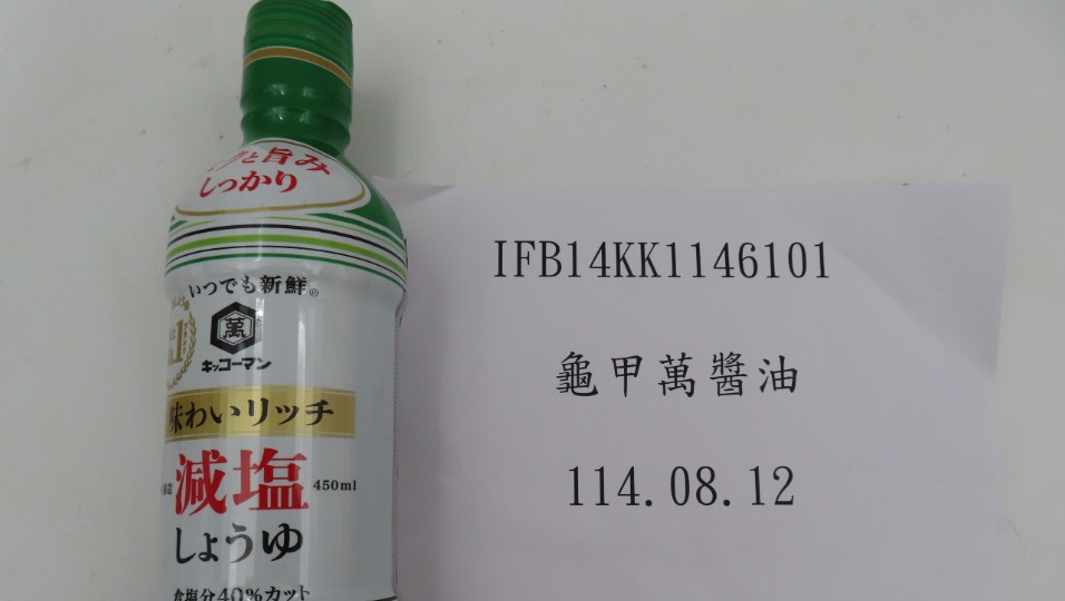 食藥署今(4)日公布邊境食品查驗不合格名單總計13項,其中1批日本進口龜甲萬醬油,檢出防腐劑超標4倍,百餘公斤產品在邊境退運或銷毀。另有2批越南進口WAKE-UP碳酸飲料,檢出非准用的調味劑,近8000公斤產品邊境退運或銷毀。