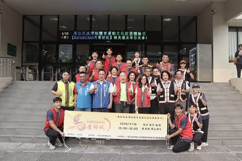 國立高雄師範大學運動競技與產業學士原住民專班(以下簡稱原民專班)115年4月16日於校園中辦理原住民族傳統體育運動文化體驗活動–「MABAHAINAN馬麽好玩」,以多元且富含文化意涵的體驗內容帶領師生深入認識原住民族的生活智慧與精神。本次活動由唐硯漁副校長、李昭蓉副校長及原民專班陳膺成主任共同主持,現場氣氛熱絡,吸引眾多師生及社區民眾熱情參與,成功將原民文化深植校園。