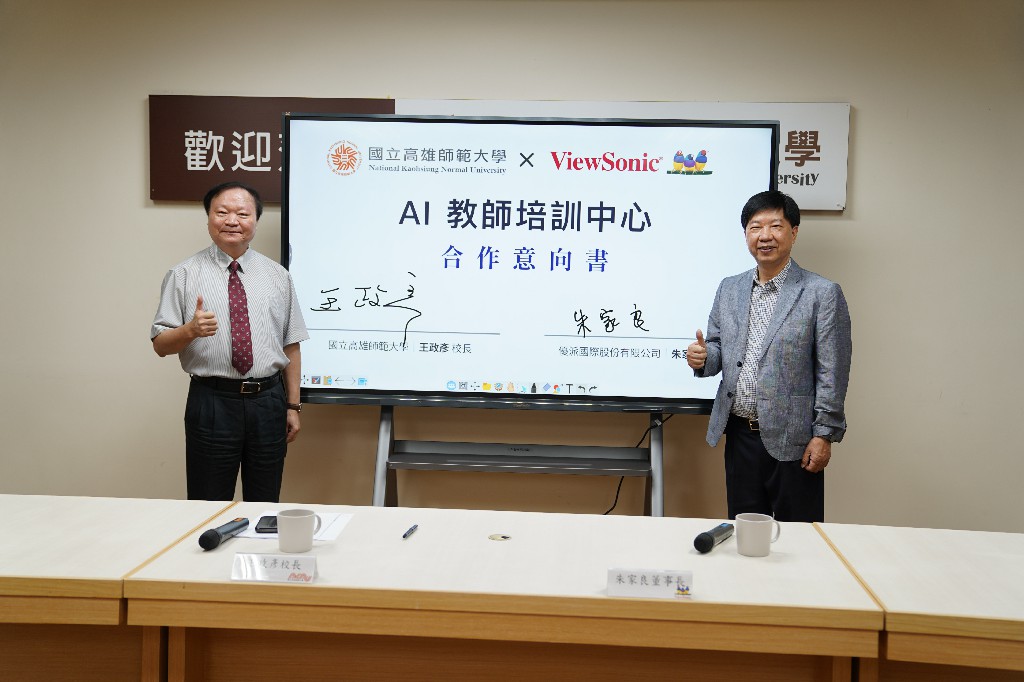 國立高雄師範大學攜手全球視訊與教育解決方案領導品牌ViewSonic,於今(15)日假高師大簡報室簽署合作備忘錄,宣布成立全台首座AI教師培訓中心。未來將透過ViewSonic先進的軟硬體設備與一系列AI教學講座培育師資,增強中小學師資即時運用AI工具融入教學現場的能力,提升教學品質與台灣在全球教育科技的領導地位。