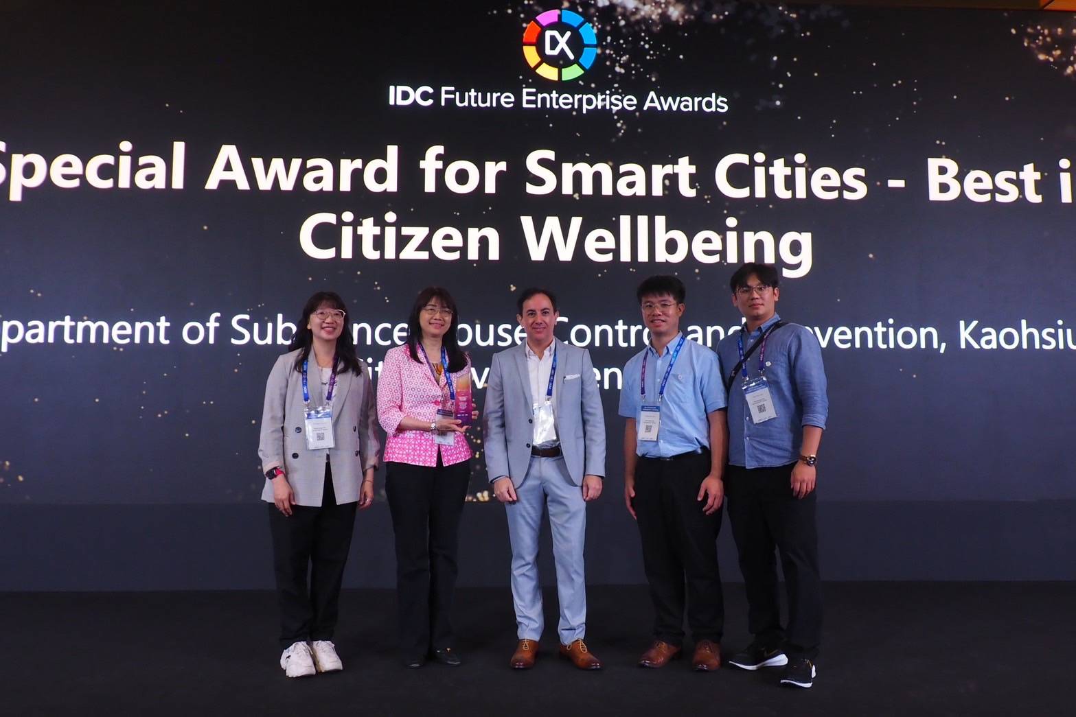 由IDC國際數據資訊有限公司(International Data Corporation)主辦的「2024未來企業大獎(Future Enterprise Awards)」於11月18、19日在新加坡舉行頒獎典禮,高雄市政府毒品防制局以「大數據&5GAIoT智慧毒品防制系統〜科技輔導暨藥癮者高風險自動預警」專案,榮獲2024 IDC未來企業大獎之「智慧城市特別獎-最佳市民福祉獎(Special Award for Smart Cities–Best in Citizen Wellbeing)」台灣暨亞太區二獎項,由毒品防制局林瑩蓉局長奉派代表高雄市政府,率隊前往新加坡領獎。