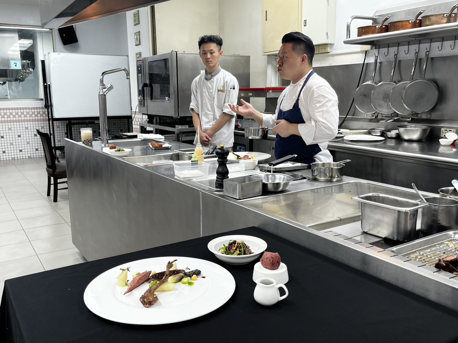 陳敦基校長力倡:智慧應用、時尚創新與經營管理,希望導入時下最新觀念給學生,而不只是技巧,因此常有海內外知名主廚至高餐大示範展演,分享人生歷程,不同文化洗禮衝擊進而讓學生反觀內在,思考自己的未來。何順凱主廚長期致力於台灣傳統食文化傳承,與擅長法式創新技法的融合,他鼓勵同學不要妄自菲薄,以為外國的月亮比較圓,他到海外繞了一圈回到國內,深感台灣餐飲文化已臻成熟,與世界潮流同步,只要精益求精,必有所成;西餐廚藝系江敏慧主任表示何順凱主廚是台灣首位本土三星主廚,用精湛廚藝征服海內外饕客挑剔的味蕾,讓台灣深印在他們的腦海,為台灣成功宣傳,勉勵學生們有為者亦若是。