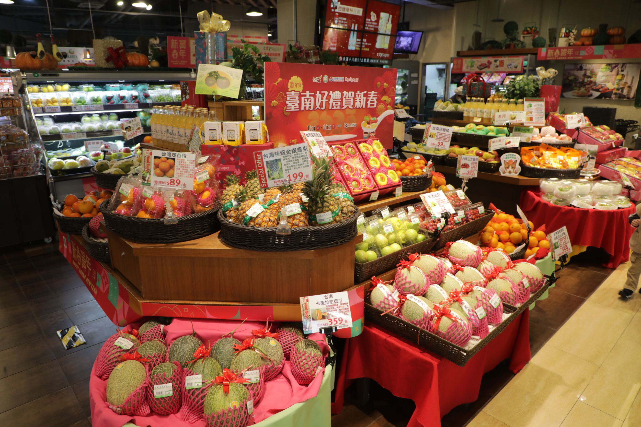 市長黃偉哲表示,很開心在歲末年終又來到板橋大遠百,跟大家分享最優質的臺南農產品。臺南是美食之都,一年四季都有好東西,從春天的鳳梨開始,陸續有芒果、文旦、柳丁、青皮椪柑、芝麻,不管產量、品質都是全國數一數二,還有今天特地帶來的年節應景水果,象徵甜甜蜜蜜的蜜棗和限量的特級哈密瓜,以及最好的烏魚子。
