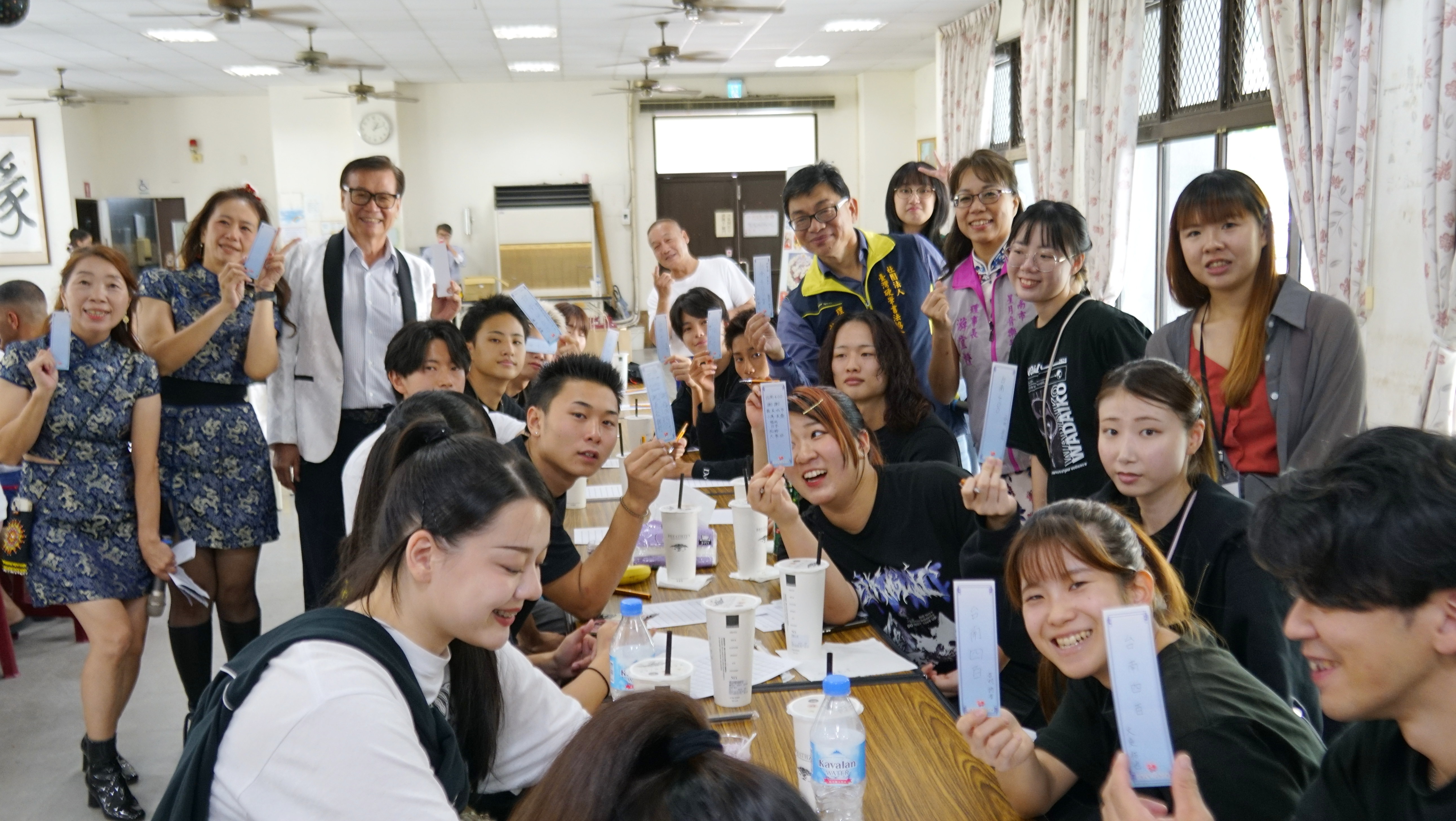 游理事長接續說到,今日的展演活動,呈現台灣台南的音樂藝術文化、除了兩位主持人的歌聲,協會理事長也帶來三首動人歌曲並邀請中華藝術學校學生覲藜帶來美妙的敦煌舞蹈,另異國新住民的走秀丰采、愛心會的舞蹈與禪舞藝術,這些分別是台灣新住民人權展望協會、臺南市關懷慈善愛心會、中華一炁身心靈教育協會、臺南市體育總會樂齡健康操運動委員會,特別一提的藝文交流為「文字藝術-有溫度的中文字」,邀請臺灣硬筆書法協會理事長許旗成,用輕鬆有趣的講解和三個國際友人互動,並一起書寫賀卡為「台南400」留下交流的印記!