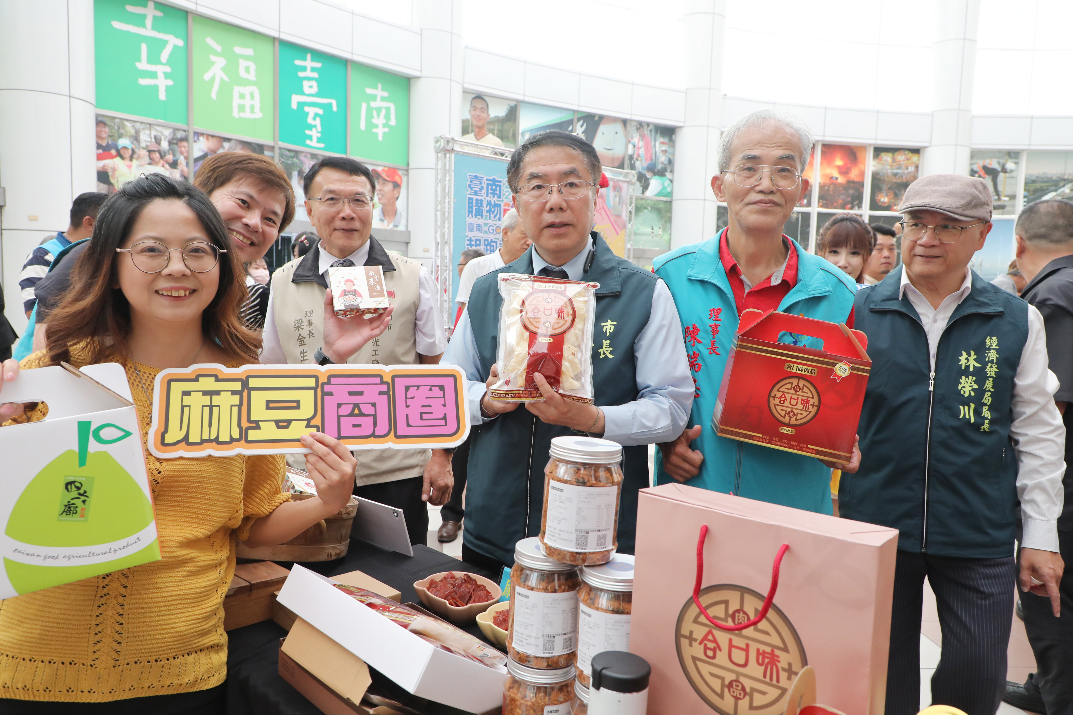 今日記者會現場嘉賓雲集,市議員沈震東、李啟維、各商圈理事長及合作廠商代表們都共襄盛舉,現場也展示特色商圈及觀光工廠各項特產好物、伴手禮,歡迎全國民眾來臺南旅遊GO購,並順道把大獎帶回家。