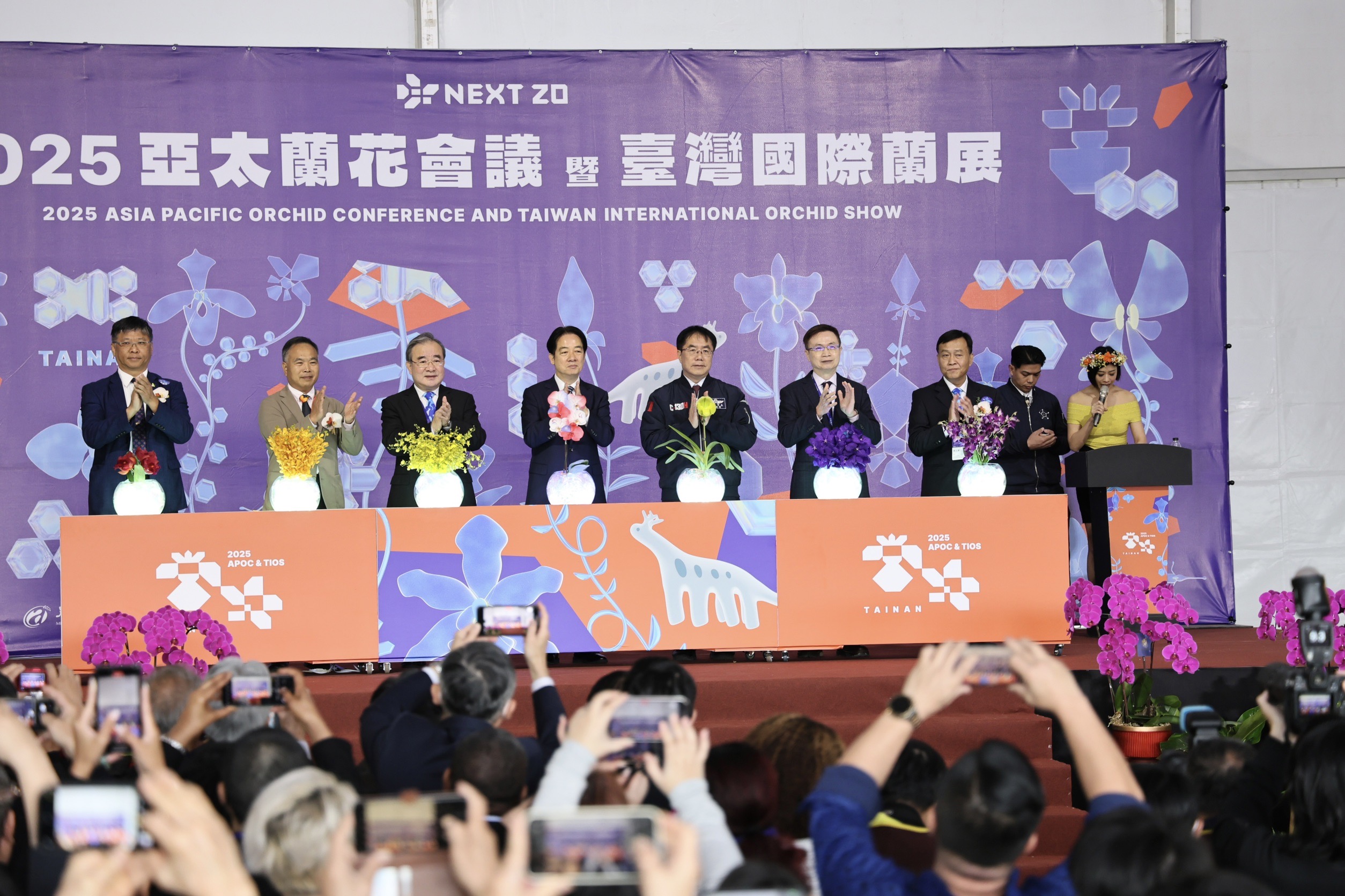 2025亞太蘭花會議暨臺灣國際蘭展開幕典禮今(7)日在台南後壁盛大舉行,現場國內外嘉賓雲集,包括總統賴清德、台南市市長黃偉哲、農業部次長胡忠一、農糧署署長姚士源、外貿協會董事長黃志芳等;聖文森及格瑞那丁、聖露西亞、聖克里斯多福及尼維斯、智利、加拿大、奧地利、新加坡、菲律賓、日本、紐西蘭等10國17位使節,以及多國蘭花產業團體、外國買主與海外評審團也蒞臨現場,共同參與開幕盛會。