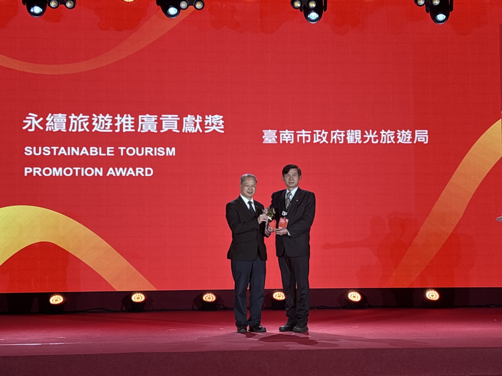 林國華局長表示,獲獎是更重的責任承擔,台南在觀光食、宿、遊、購、行各面向,仍在不斷追求創新及進步,台南觀光在公私協力下,必能取得更多更好的成績。