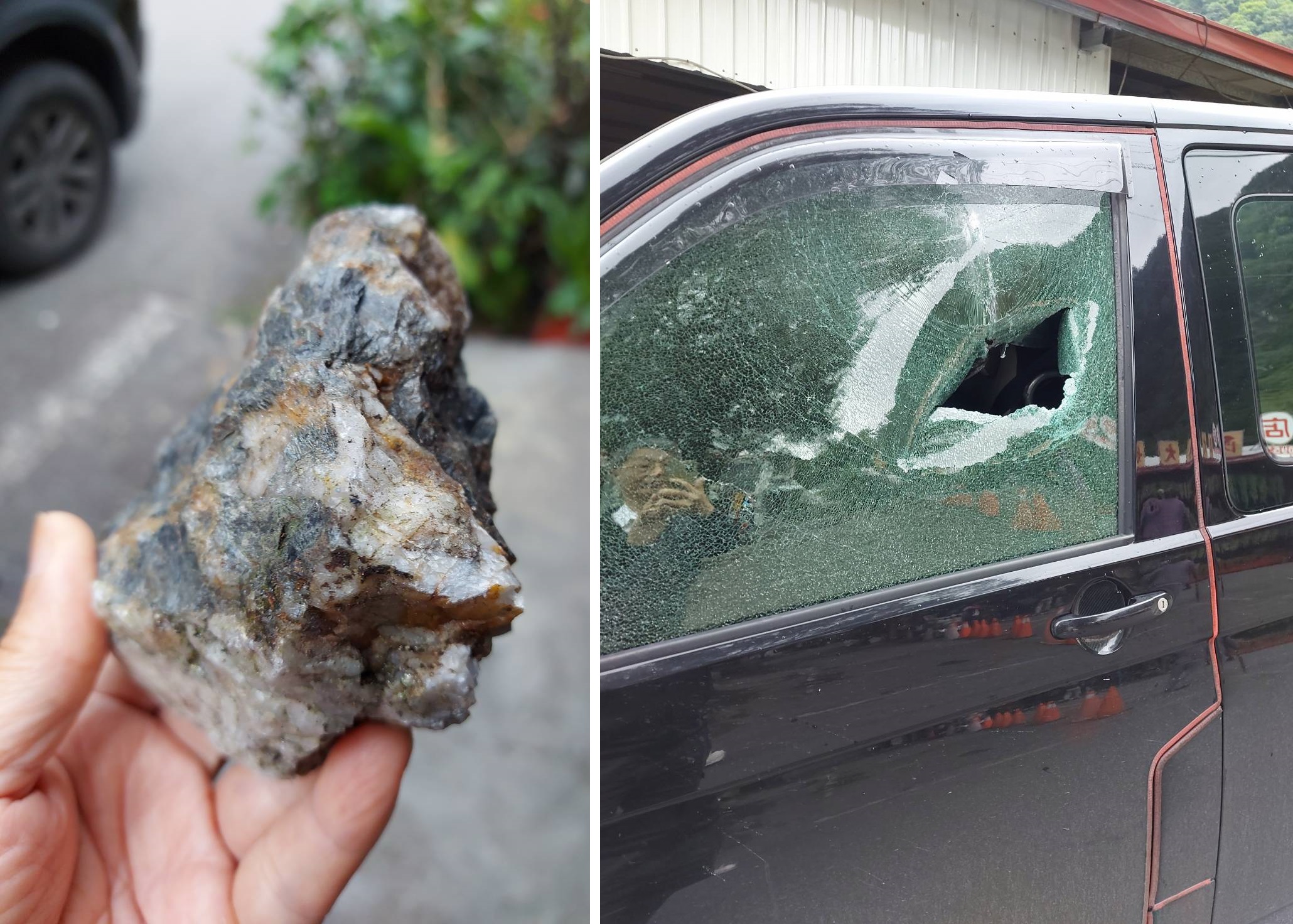堅硬落石砸進車窗 有人驚魂有人驚醒